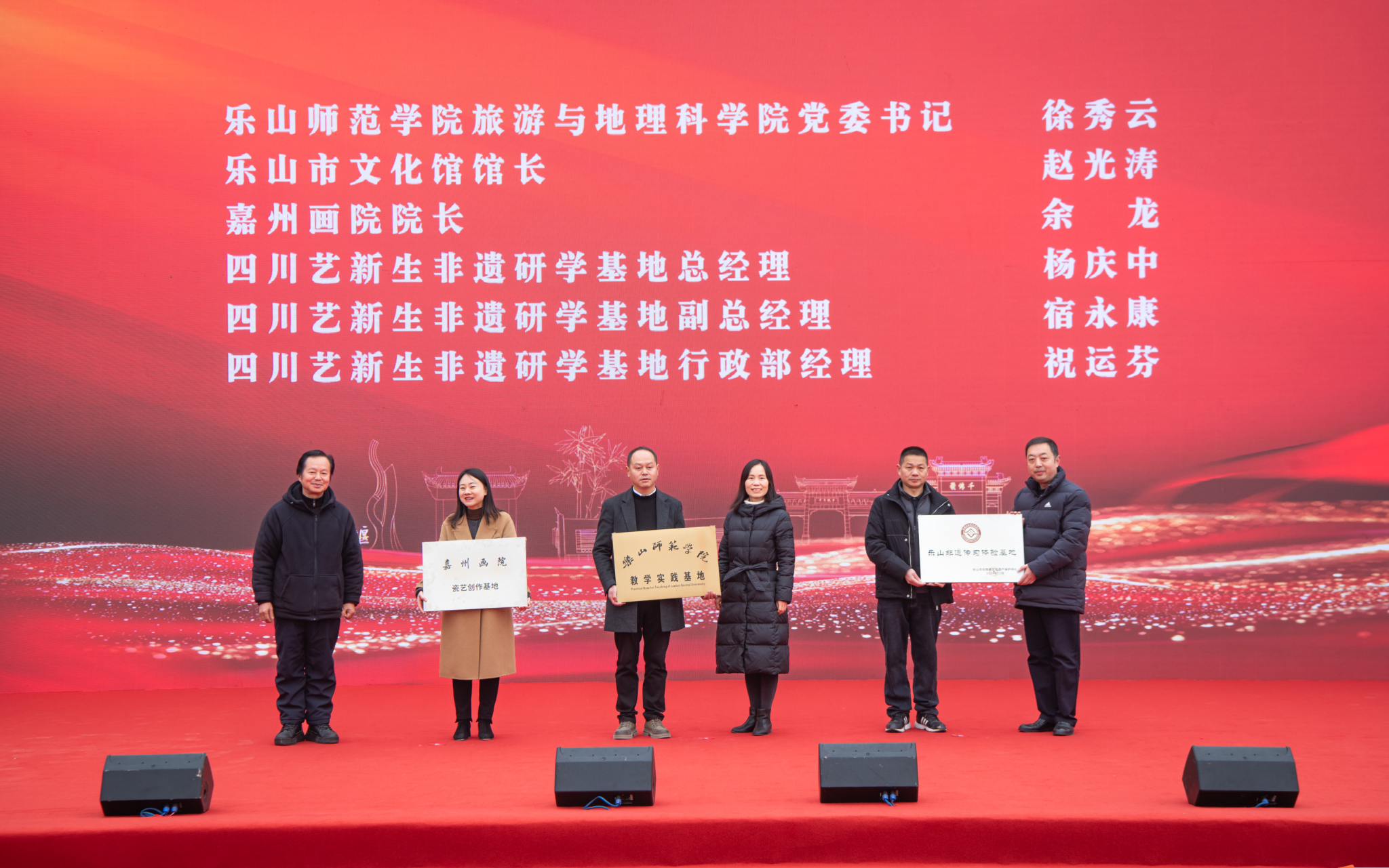 本网讯(文/吴薇;图/四川艺新生非遗研学基地、吴薇)12月28日,应夹江县人民政府邀请,beat365英国官方网站党委书记徐秀云,党委副书记、院长郭剑英,副院长但强,四川旅游发展研究中心原主任郑元同,四川世界遗产普及基地主任乔恒忠,学院教师吴薇和12名学生志愿者参加了在夹江县甘江镇新生村举办的2025年夹江县元旦春节系列活动启动仪式暨四川艺新生非遗研学基地开园仪式。