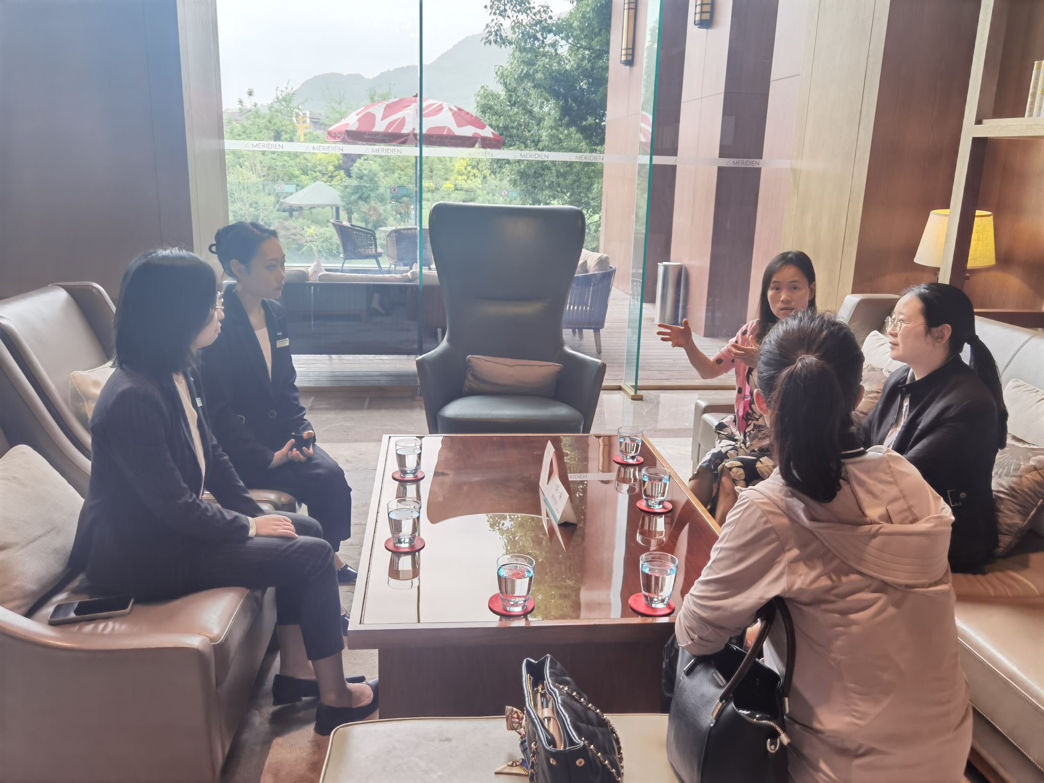 座谈会上,艾美酒店人力资源部副经理徐霞对徐秀云一行的到来表示热烈欢迎,并高度评价了旅地学院实习生的专业素养和实践能力。她表示,实习生工作态度积极,有良好的服务意识,酒店将在专业技能应用和行业适应能力等方面助力实习生进阶。