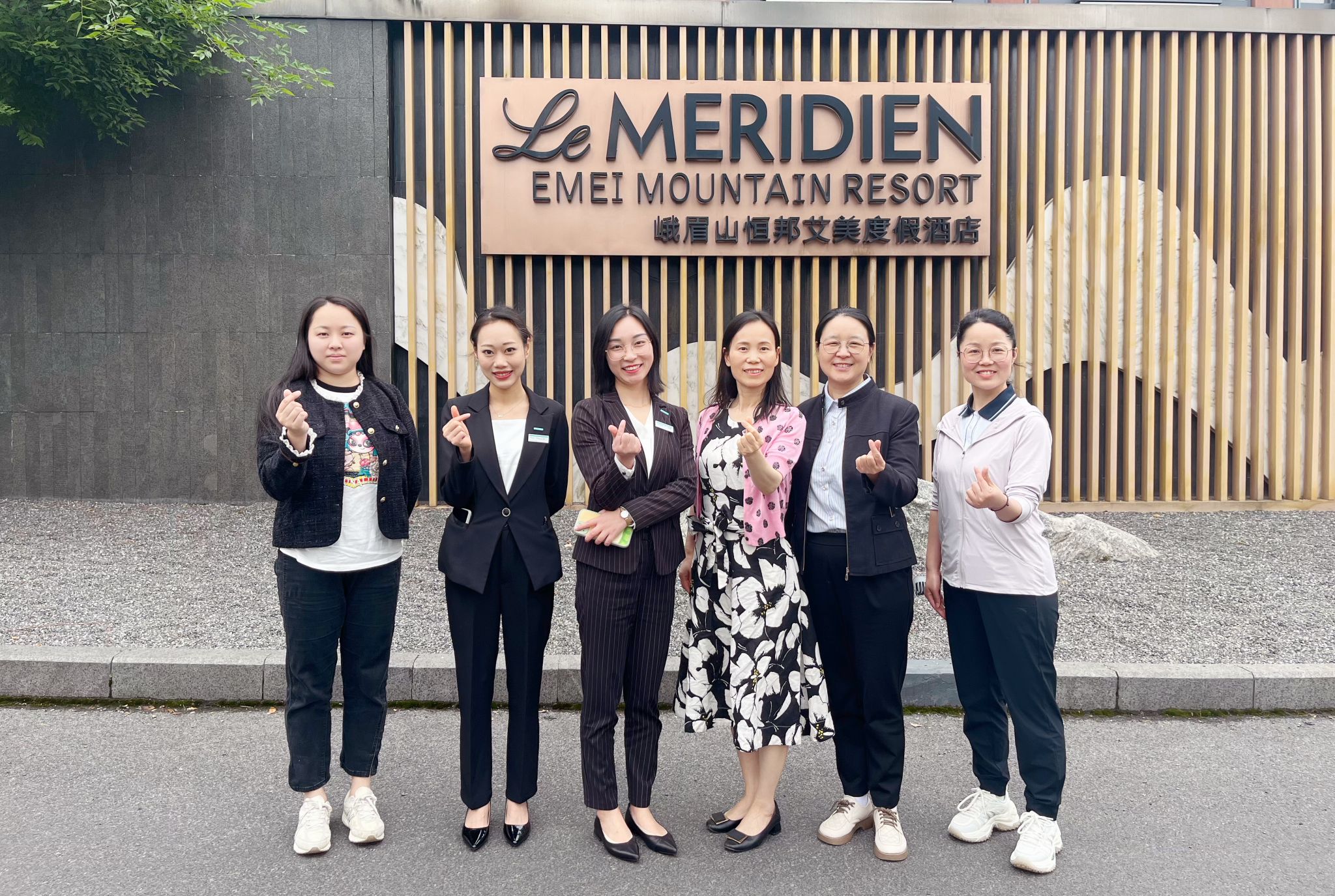 本网讯(文、图/郑曾俊)为深化产教融合,推进校企协同育人,5月9日上午,beat365英国官方网站(以下简称“旅地学院”)党委书记徐秀云,学校教学部副部长肖露欣、实践教学科科长宋春草等一行赴峨眉山恒邦艾美度假酒店(以下简称“艾美酒店”)开展实践教学基地调研、访企拓岗及毕业生慰问工作。