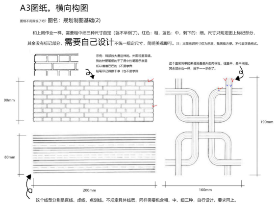 网络授课几周后发现,直播课上,学生集中性不高,对于知识的抓取不准确,很多问题反复直播强调还是会有走神、不清楚的情况出现。一开始采用线上答疑方式,学生如果错过一定时间段,再去聊天记录里面查找,因为信息过多,可能就无法找到相关信息了。所以在第五周授课之后,宋老师改变了布置作业方式,采用布置制图的形式。以工具线条制图基础举例: