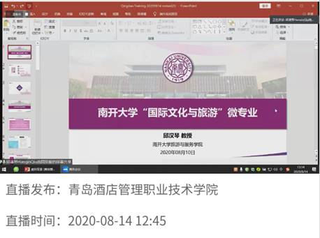 本网讯(文、图/王瑛)2020年8月14日下午,旅游学院副院长但强、院长助理孙永兴、酒店管理专业负责人王瑛参加了由中国旅游协会旅游教育分会主办、青岛酒店管理职业技术学院承办的2020年全国旅游院校“酒店专业‘金课’建设”师资培训班。培训班围绕旅游类院校酒店管理专业“金课”建设,探讨酒店管理专业教学标准,促进酒店管理专业人才培养,分享酒店管理专业建设的实践成果。通过聆听学习专家们的讲座,老师们对如何更好地推进酒店管理专业教育教学发展,促进酒店管理专业课程体系建设,提高酒店管理专业教学质量有了更加深刻系统的认识,有助于未来beat365官网酒店管理专业改革建设与人才培养。