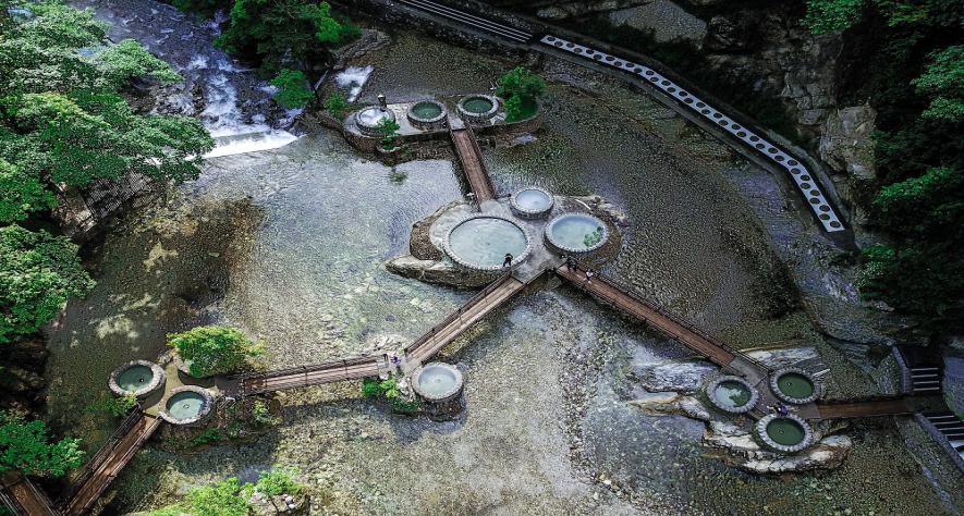 螺髻·九十九里由百瀑谷、螺髻第一峰、云端之上、原始森林四大景观群组成,九十九里是整个螺髻山脉的核心组成部分,2013年该温泉被世界纪录协会认定为世界最大温泉瀑布、世界仅有的温泉群岛、世界仅有的悬崖温泉;是“世界最美温泉",也是“中国最美温泉旅游景区”。螺髻·九十九里温泉瀑布集观赏、娱乐、养生于一体,是螺髻山五绝之首。