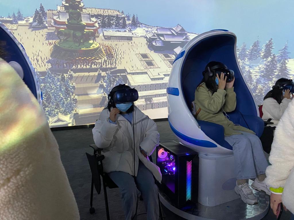 第二站去往的是峨眉山智慧文旅体验中心。在讲解员的带领下,同学们先后体验了倾听峨眉、5G山水间、旅途芯家等功能展区,深刻体会到VR、5G+、3D裸眼、全息成像等现代技术在旅游领域的应用与魅力。