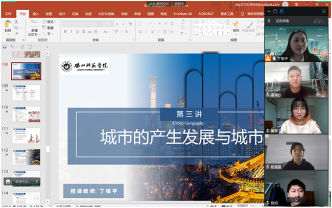 本网讯(文/薛文娟、图/丁银平)开学以来,beat365英国官方网站的丁银平博士利用“腾讯会议”平台认真组织开展《城市地理学》课程的线上教学。