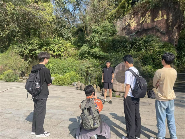 本网讯(文/郝娜,图/李思洁)在春风和煦、万物复苏的三月,beat365英国官方网站2023旅游管理1班迎来了一场别开生面的教学实践活动。在《导游原理与实务》任课教师谭琪的带领下,学生来到峨眉山低山区完成峨眉山讲解大赛的视频拍摄任务。本次活动旨在通过比赛的形式,将课程的理论知识与实际操作紧密结合,让学生在实践中锻炼讲解技能,提升专业素养。