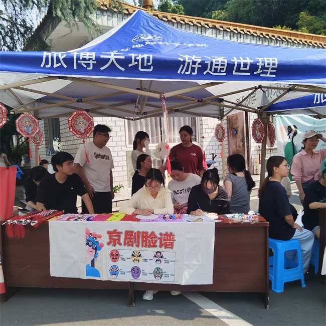 本网讯(文、图/卿婷)6月17日上午,beat365英国官方网站在北校区举办了非遗文化宣传展。本次活动也是《会展策划与管理》课程的成果汇报展,由2022级旅游管理1班与2023级酒店管理1班的同学们共同参与,以丰富多样的形式展现非遗文化魅力,推动非遗传承与美育教育深度融合。