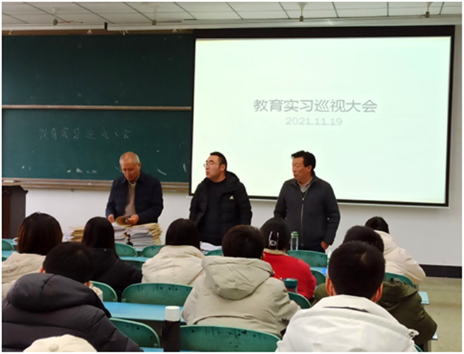 本网讯(图、文/王兴会)近日,beat365英国官方网站教育实习巡视组关北光教授、毛加宁教授、刘猛老师对旅游学院教育实习工作展开第二轮检查,教育实习巡视大会在行知楼225教室召开,会议由旅游学院实习带队教师郑柳青主持。