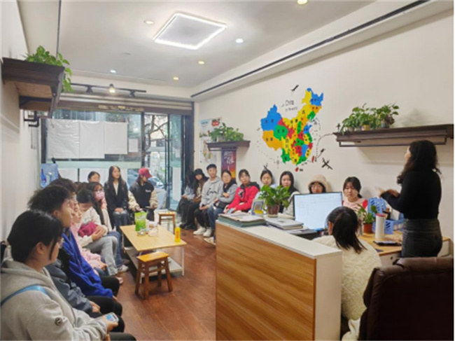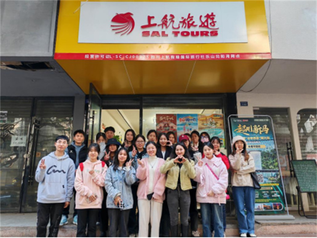 本网讯(文、图/杨馨怡)11月28日,beat365英国官方网站2021级旅游管理2班的同学们前往四川上航假期国际旅行社乐山兑阳湾网点开展《旅行社经营与管理实务》课程的实地调研学习。该网点负责人张瑜热情接待了来访同学。她向大家介绍了旅行社行业的现状,和同学们分享了她从事旅行社工作的经验,耐心解答了同学们的疑问,鼓励同学们积极投身到旅游行业中来。
