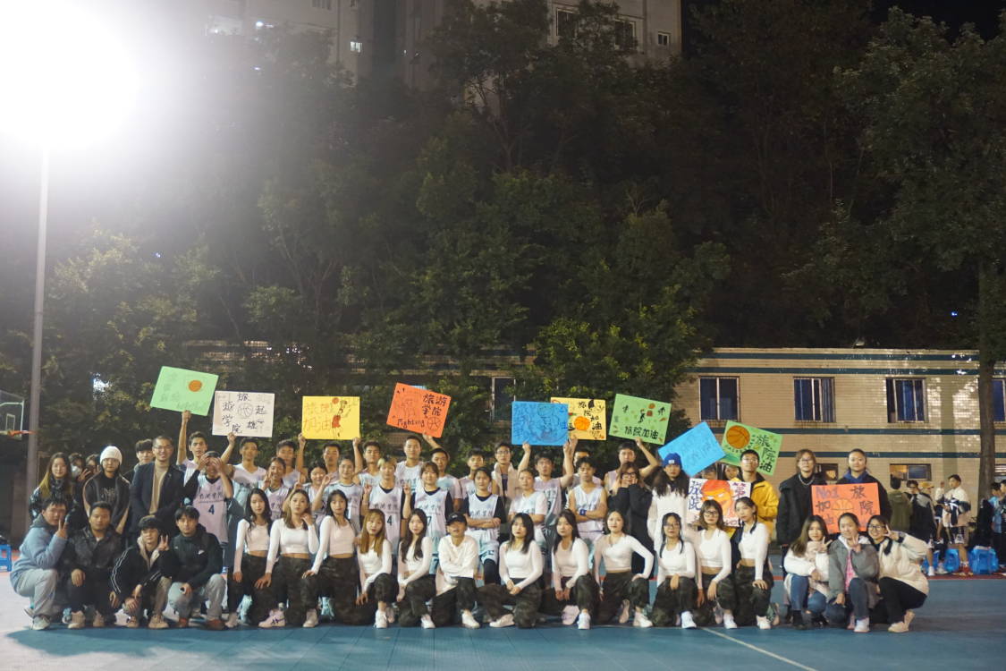 本网讯(文/陈姗姗、图/肖雨蕾)11月22日,旅游学院于南校区篮球场参加2021年LUBAbeat365英国官方网站大学生篮球赛第三场联赛。21级辅导员喻剑老师、21级部分学生以及啦啦队们到场为球员们呐喊助威。
