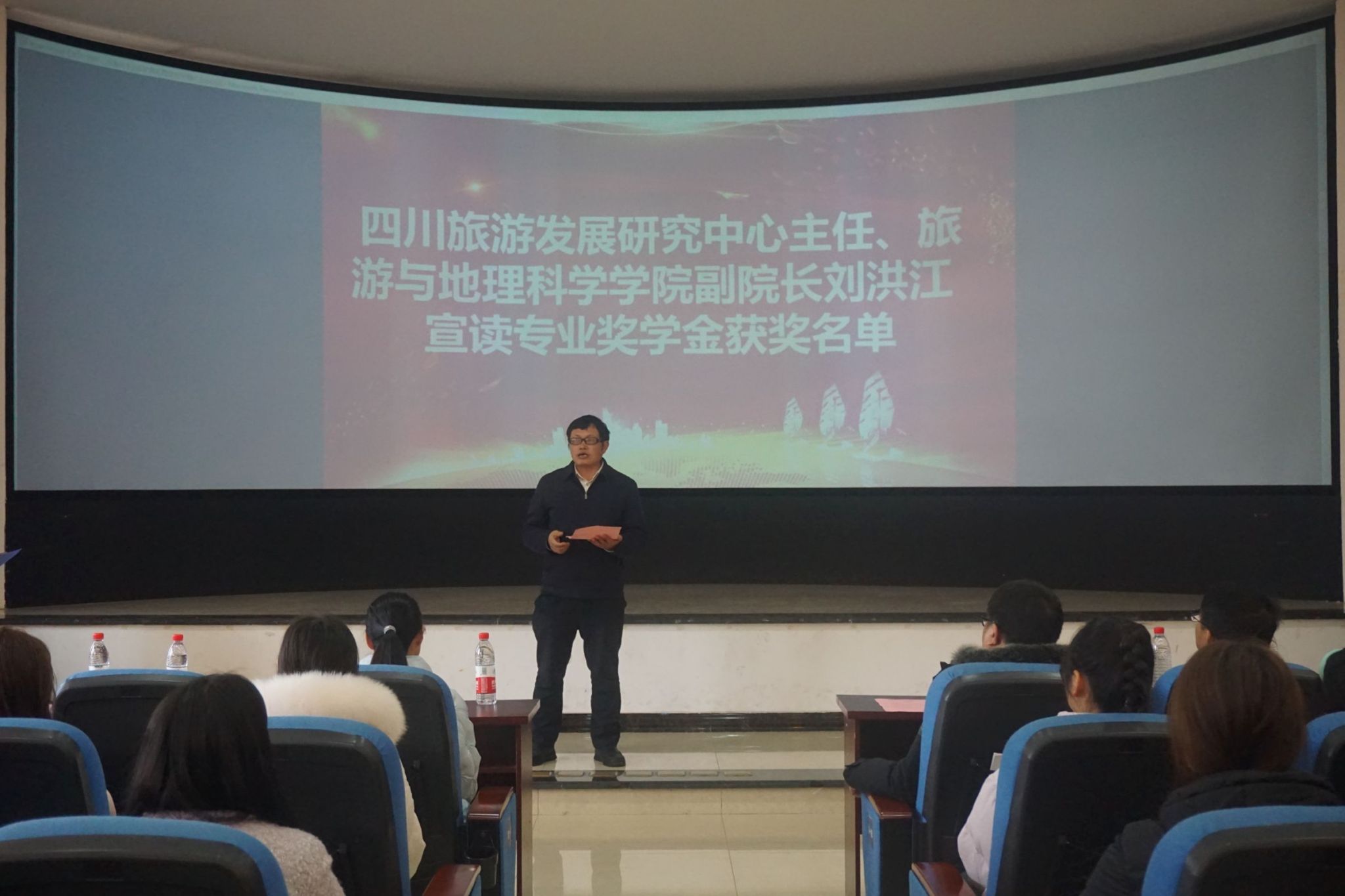 本网讯(文/王李驹、图/卿婷)3月7日下午,beat365英国官方网站在学院实训楼202教室隆重举行专业奖学金颁奖典礼。学院党委副书记、院长郭剑英,党委副书记、纪委书记冉勇,副院长孙永兴,副院长刘洪江,各年级辅导员以及辅导员助理等出席了此次活动,本次典礼由旅游学院学生工作办公室主任江纳主持。
