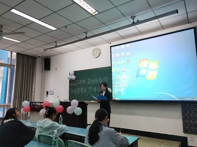 主持人为参赛选手介绍了比赛规则,比赛正式开始。参赛选手精神饱满、青春洋溢,表达了以优异成绩喜迎二十大胜利召开的决心,述说着对党和祖国最清澈的爱,祝愿伟大的祖国繁荣昌盛,人民幸福安康。最终,20级杨洁同学以出色的表现获得本次比赛第一名。评委对参赛选手的表现作了点评。