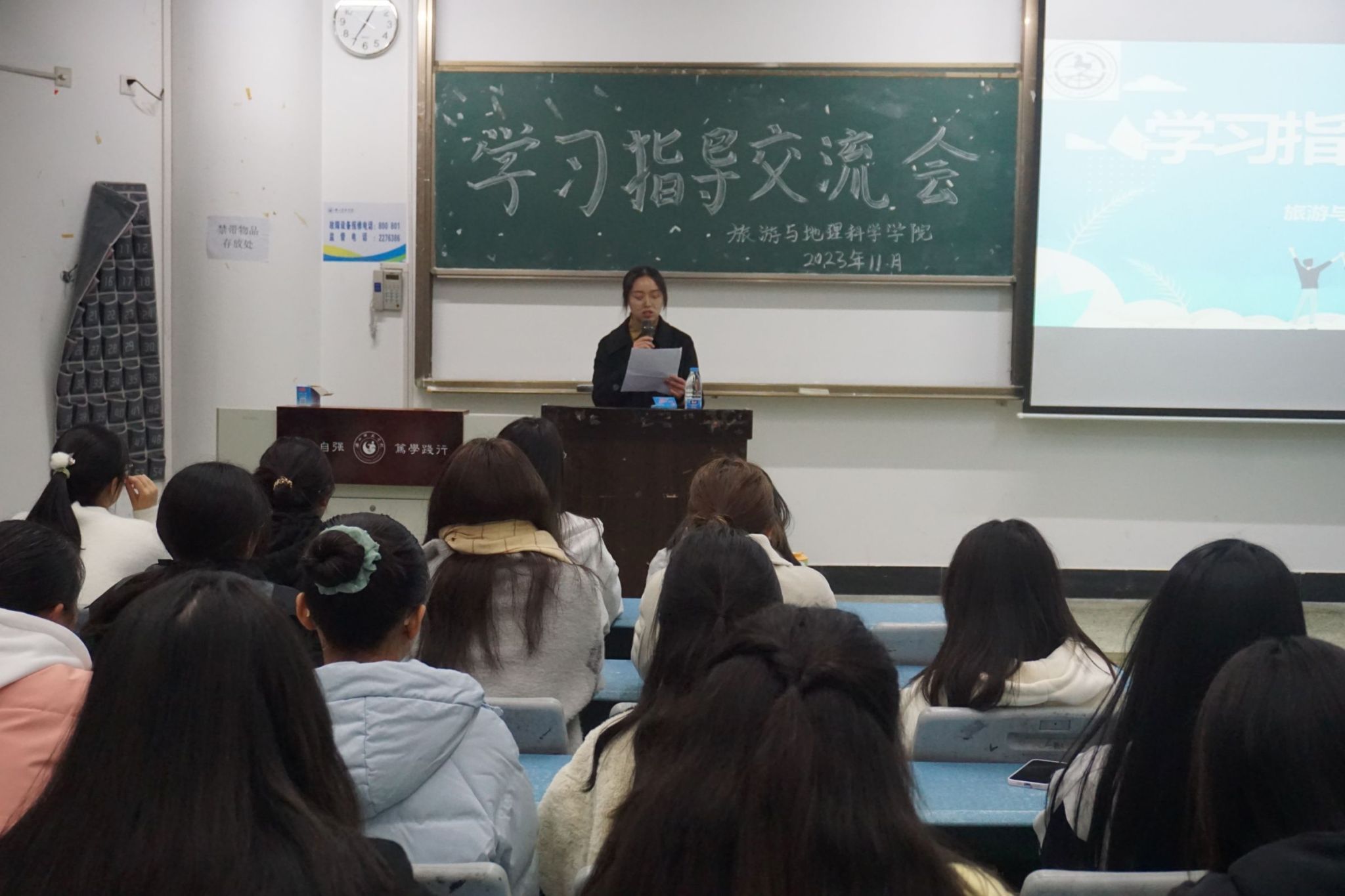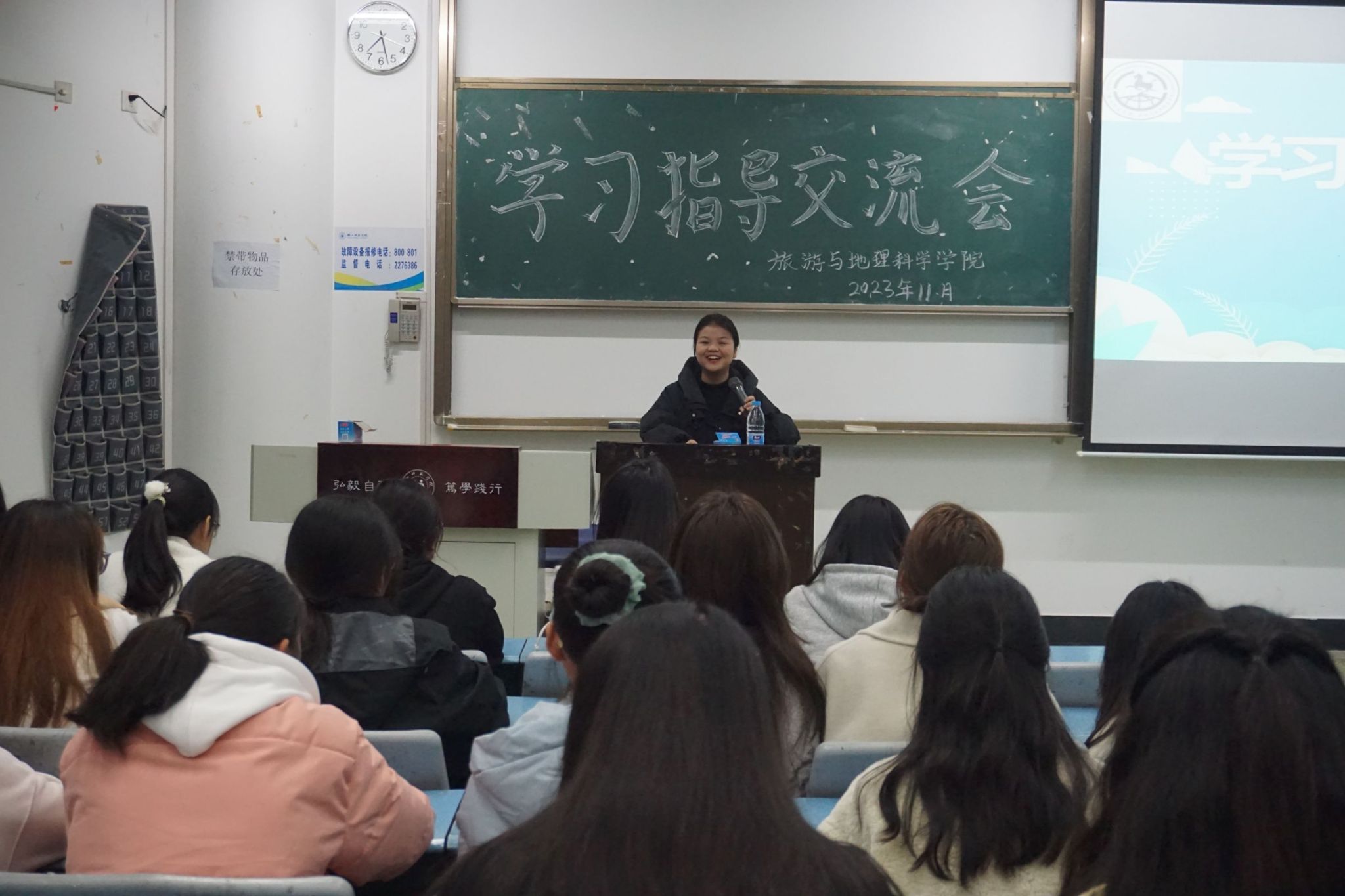 21级旅游管理二班吉宜洋以要制定明确的学习计划、要了解所学学科的性质、保持健康这三点鼓励大家在期末复习过程中要把握方向,坚持不懈。21级人文地理与城乡规划一班李慧结合人文地理与城乡规划专业的特点分享了诸多期末实用小技巧,建议大家在期末复习中要学会自主学习、合理安排和劳逸结合。21级酒店管理一班李莲莲从日常学习和期末复习两方面建议大家要有个人的短期和长期规划,正确把握“人机距离”。22级地理科学二班马丹妮通过对综合测评成绩的详细介绍鼓励大家要有信心面对即将到来的期末考试。最后,李慧回答了大家对复习周的疑惑,并代表四位学姐向学弟学妹们表达美好祝愿。