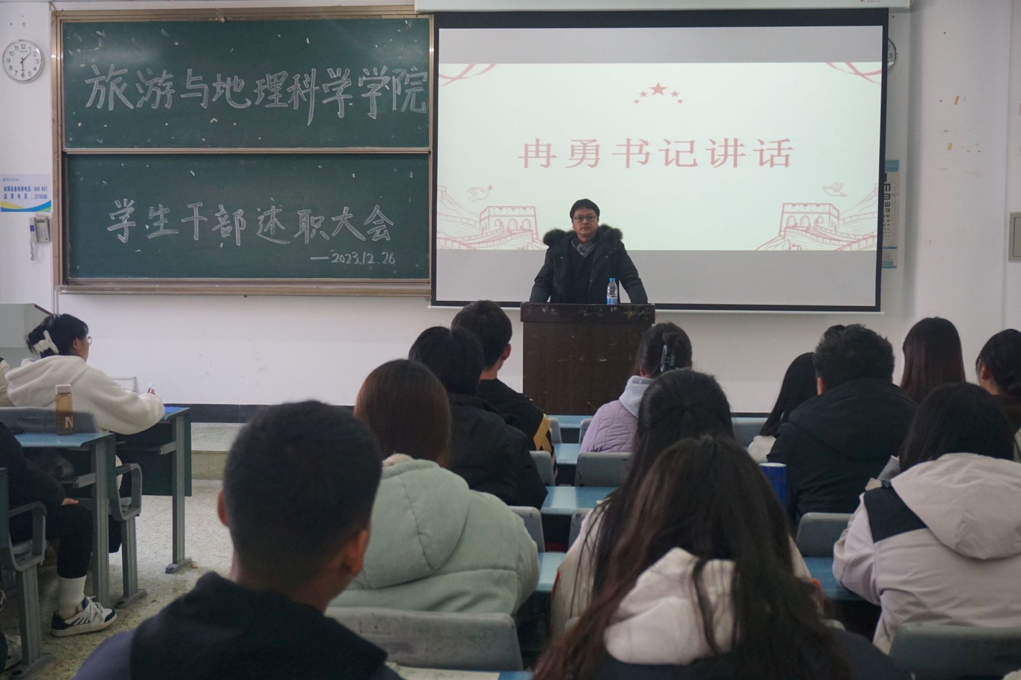 本网讯(文/卿婷、图/王东梅)12月26日,beat365英国官方网站在行知楼214教室召开了学生干部述职大会。会议由学生分会副主席罗佳元主持。beat365英国官方网站党委副书记、纪委书记冉勇以及分团委、学生分会、青年传媒中心全体学生干部参加了会议。