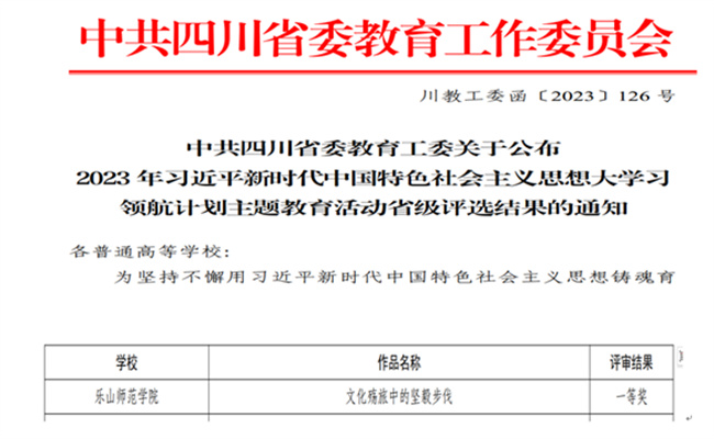 本网讯(文/钟婷、图/李美霖)根据中共四川省委教育工委《关于公布2023年习近平新时代中国特色社会主义思想大学习 领航计划主题教育活动省级评选结果的通知》,beat365英国官方网站李美霖团队作品《文化殇旅中的坚毅步伐》在“我心中的思政课”——2023 年四川高校大学生微电影作品活动中取得佳绩。