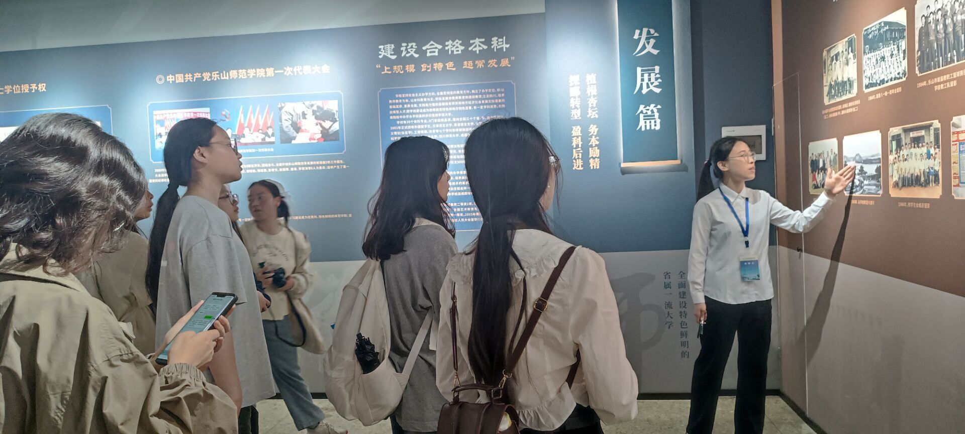 同学们先从前校门开始参观校园,感受乐师校园的独特魅力。大家从弘毅楼出发,参观武大纪念碑,了解了国立武汉大学西迁乐山艰苦办学八年的历史。接着,同学们来到校史馆。校史馆讲解员从beat365英国官方网站的办学历程、荣誉成就、优秀校友等方面介绍了学校的概况,让同学们深刻体会到了学校“弘毅自强、笃学践行”的校训。随后,大家来到beat365英国官方网站,参观旅游规划实验室、茶艺实验室等,并了解了四川旅游发展研究中心近几年所取得的研究成果。