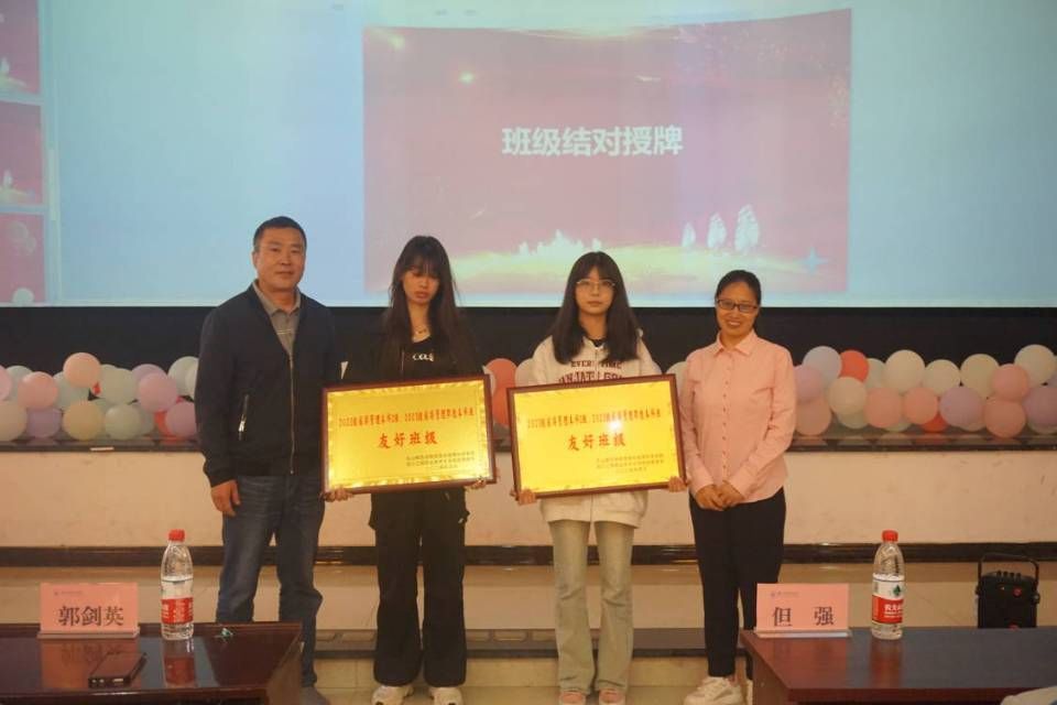 行了班级结对仪式,仪式由冉勇主持。郭剑英对联合培养班师生表示热烈欢迎,她从学院基本情况、近几年取得的突出成效、教师团队、优秀校友代表及研究方向和未来的发展方向等方面介绍了院情,表示将充分发挥学院优势,为联合培养班学生的成长和发展提供强有力的支撑和丰富的资源,并希望双方未来继续加强沟通协作,联合促进学生发展。此外,两个大四学姐还为同学们分享了考研的经验和方法。