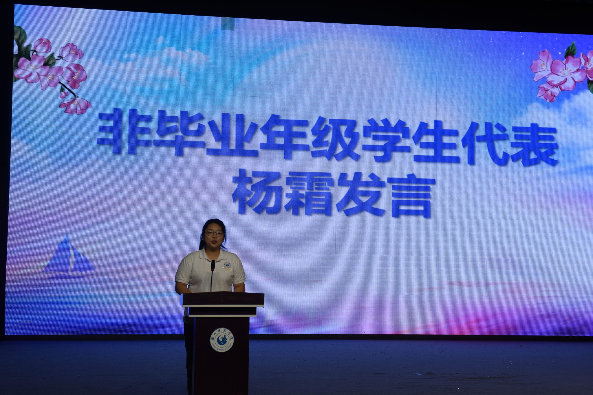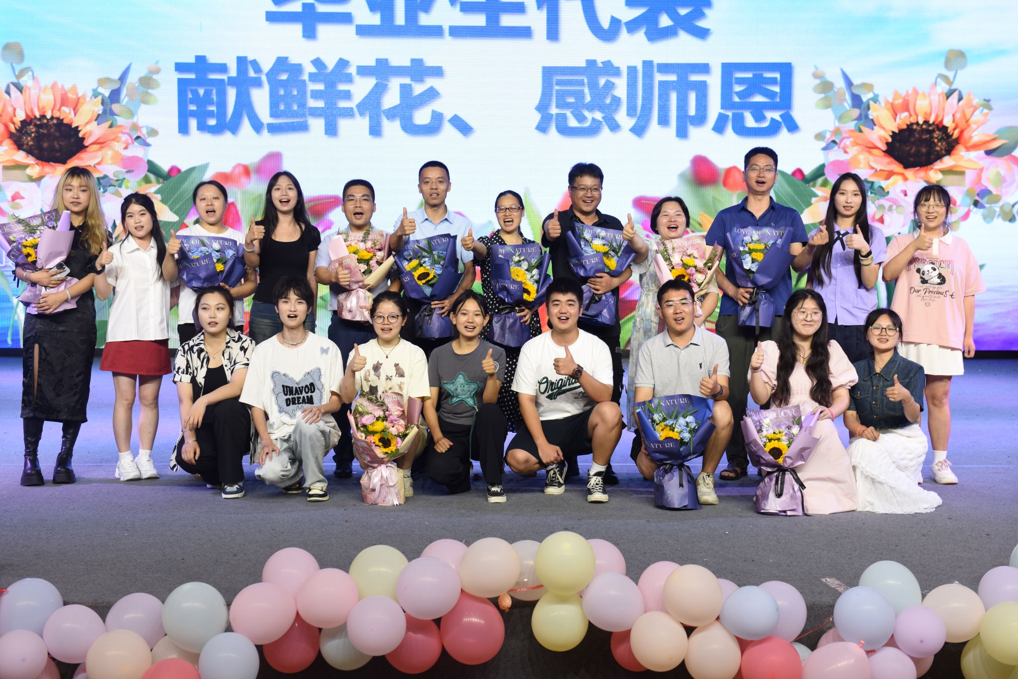 在精彩的节目表演之后,江纳组织开展了安全知识有奖竞答,详细讲解了相关安全知识。李嘉玮等毕业生代表发言,表达了对同学们的祝福,对母校和老师的感谢。随后,毕业生代表为老师们献花以感谢师恩,学院也为毕业生赠送毕业礼物以表达美好祝愿。