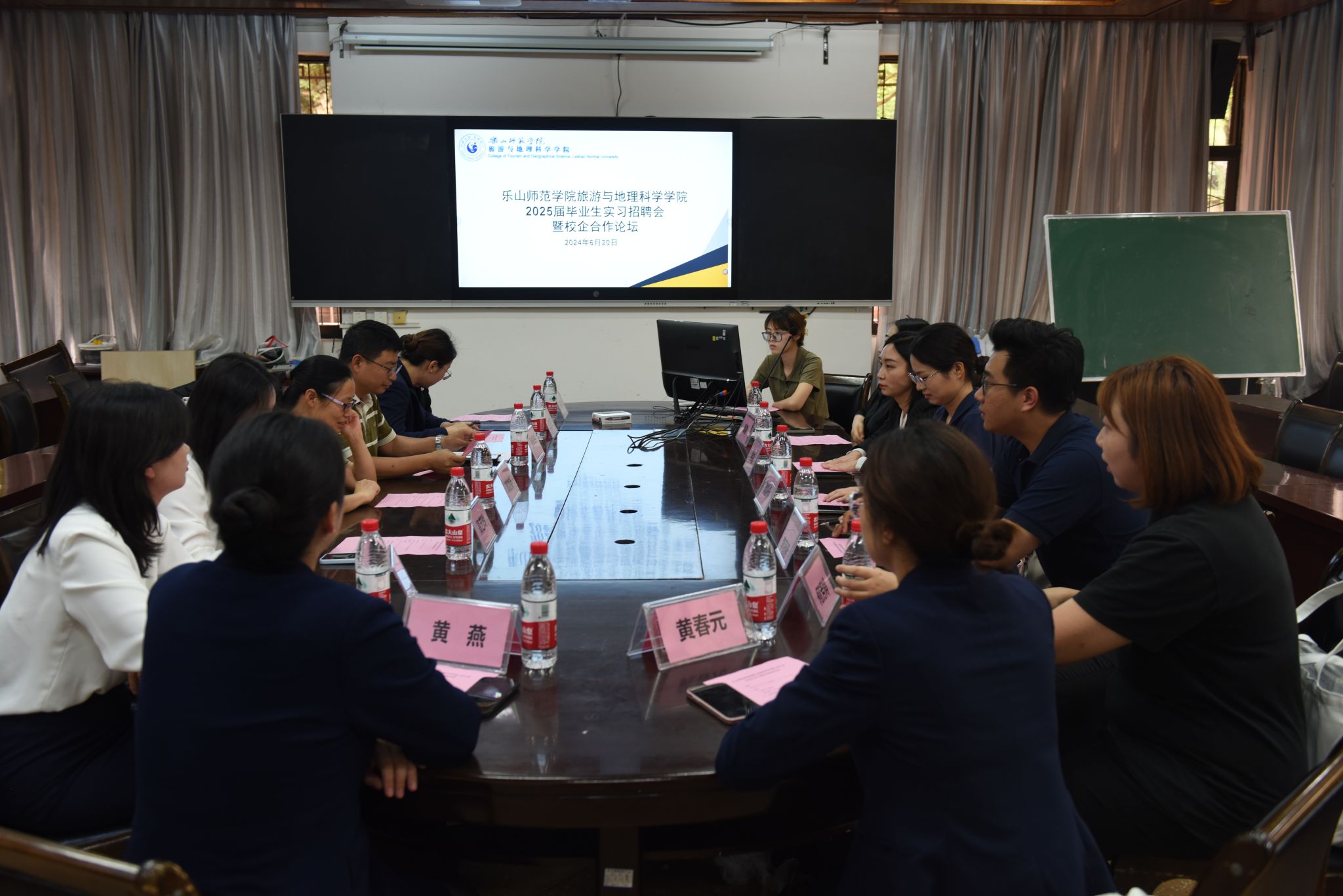 本网讯(文/卿婷、图/刘涛)6月20日下午,beat365英国官方网站在旅院楼102室召开了2025届毕业生实习招聘会暨校企合作论坛。学院党委副书记、院长郭剑英,副院长孙永兴,辅导员郑曾俊以及各校企合作基地代表参加了此次论坛。
