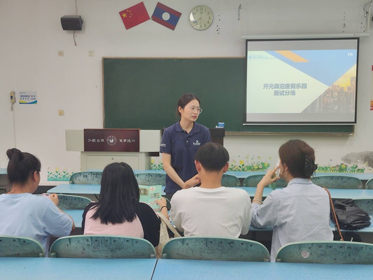 开元森泊度假乐园、厦门温德姆至尊豪庭大酒店等企业的相关负责人先从酒店的位置、环境、优势、发展等介绍了酒店的相关概况。接着,他们详细介绍了实习生的衣食住行、人才培养等内容,并为同学们解答实习的相关事宜。最后,同学们根据自己的情况选择适合的企业前往分会场参加面试。