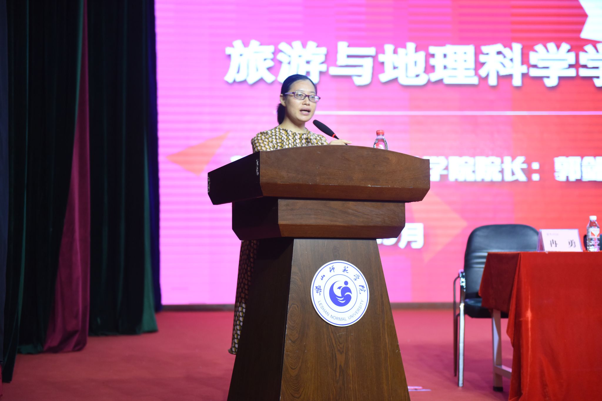 教师代表朱冉博士以“珍惜”为主题发言。她说,大学生活转瞬即逝,希望同学们珍惜当下、珍惜他人,珍惜自己,做坚韧、坚毅、坚强、坚定的旅地人。