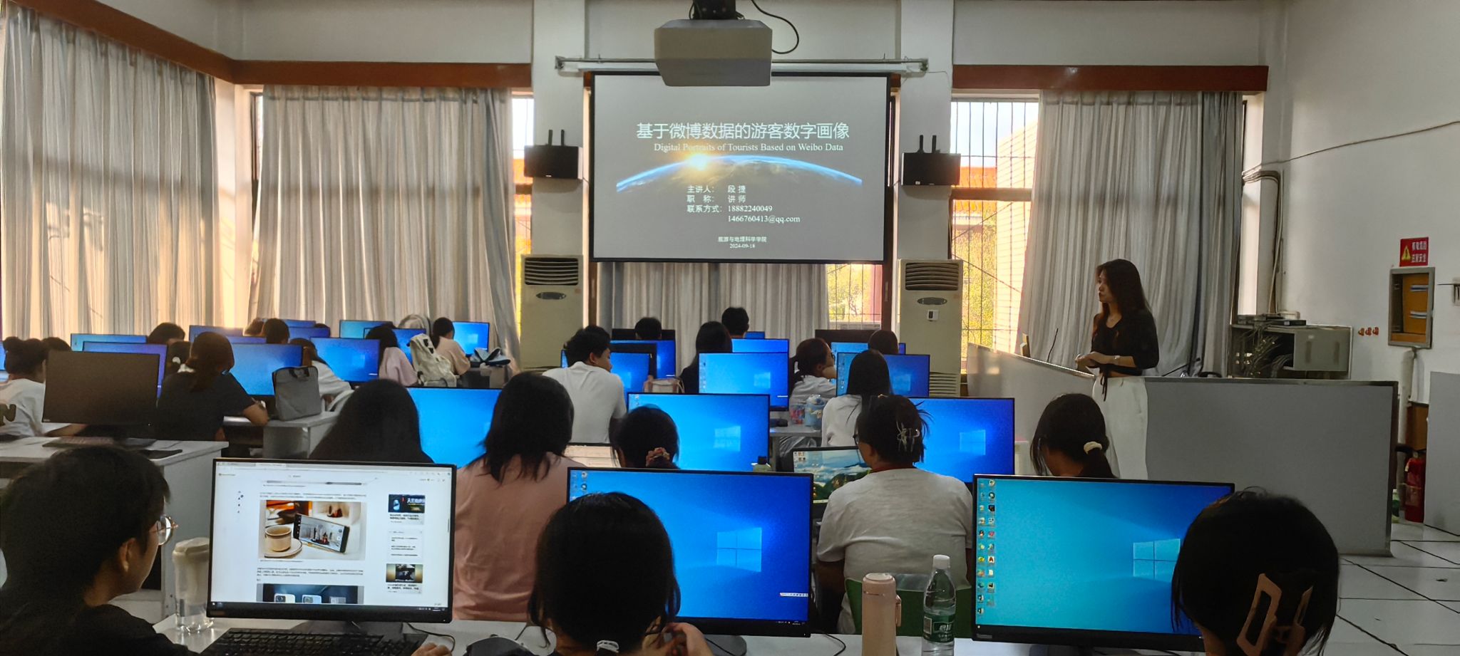 本网讯(图/袁浩,文/吴佳杰),为推进学生专业技能发展,提高学生综合素质,9月20日,beat365英国官方网站在实验楼201开展基于微博数据的游客数字画像课程,由段捷老师讲授旅游数据的爬取,与数据可视化处理。