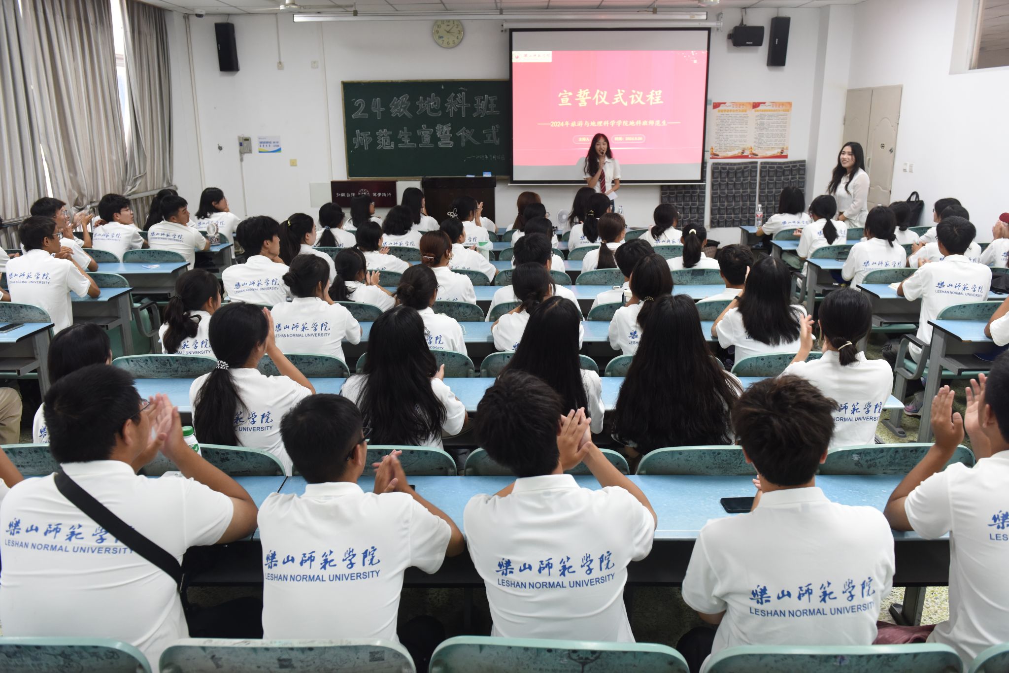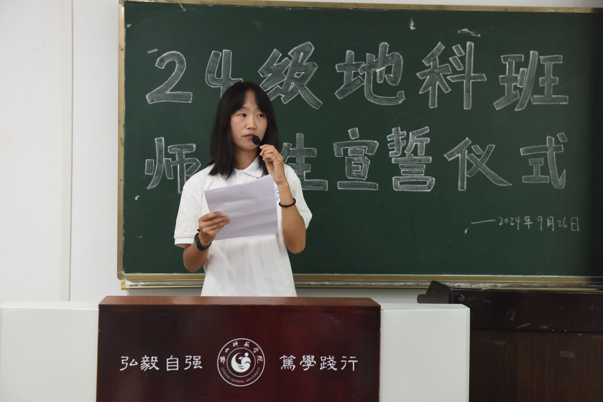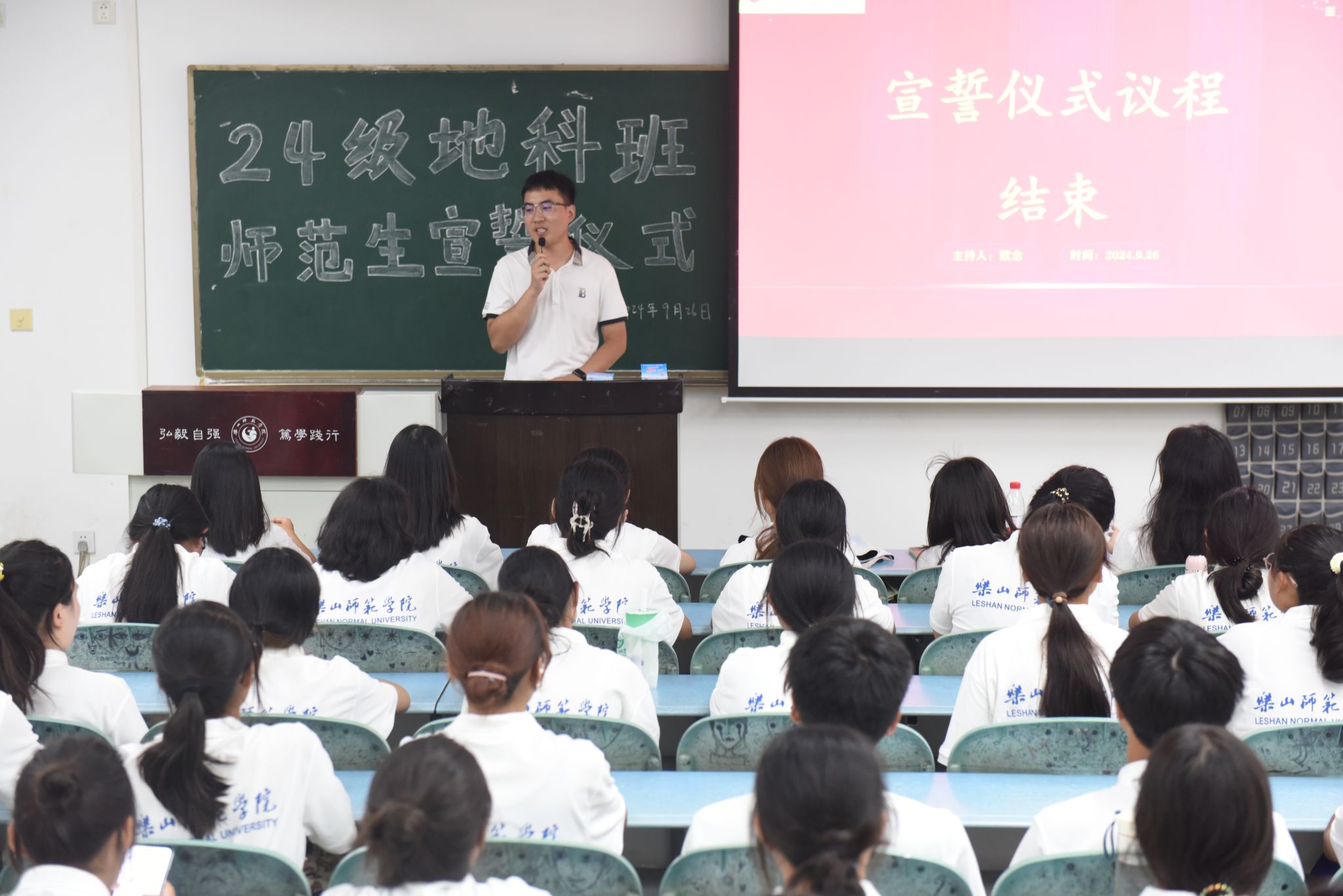 本网讯(文、图/刘涛)9月26日下午,beat365英国官方网站在行知楼213教室举行“师范生宣誓”活动,24级辅导员王强、班主任向婉丽及24级全体地科班的同学参加了本次活动。