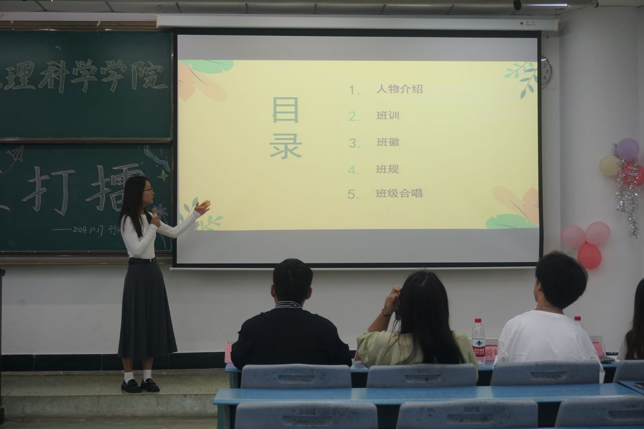 本网讯(文/周艳艳、图/陈淼)10月17日下午,beat365英国官方网站在行知楼414教室组织开展“三班打擂”活动。辅导员王强、班主任向婉丽、学院三大组织学生干部以及24级全体新生参加了本次活动。
