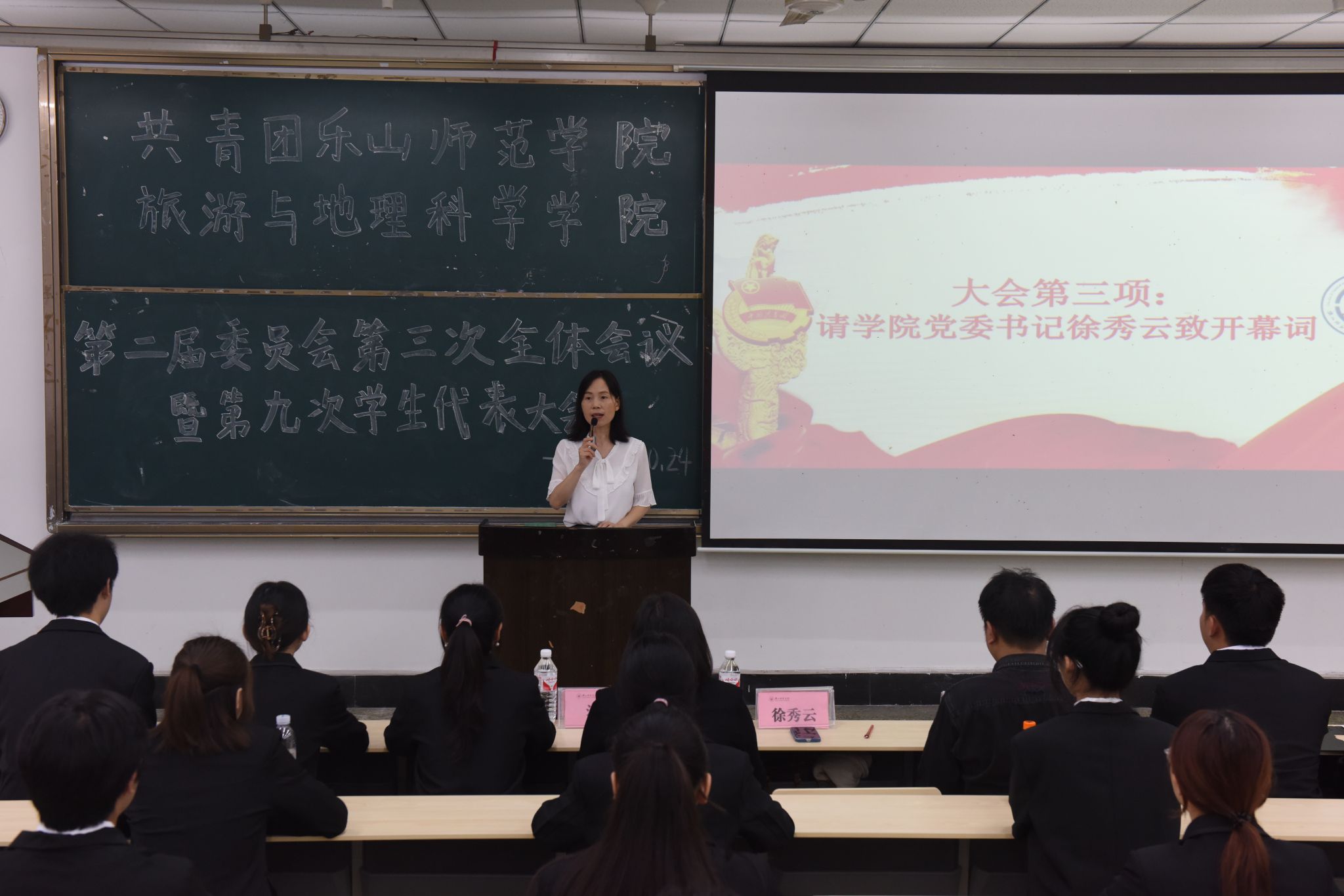 本网讯(文/兰斯桐、图/刘涛)10月24日下午,beat365英国官方网站在行知楼101教室隆重举行共青团乐山师范师范学院beat365英国官方网站第二届委员会第三次全体会议暨第九次学生代表大会(以下简称为团学代会)。学院党委书记徐秀云,党委副书记、纪委书记冉勇,分团委书记、学习工作办公室主任江纳以及beat365英国官方网站学生干部参加了会议。会议由学院分团委副书记李思洁主持。