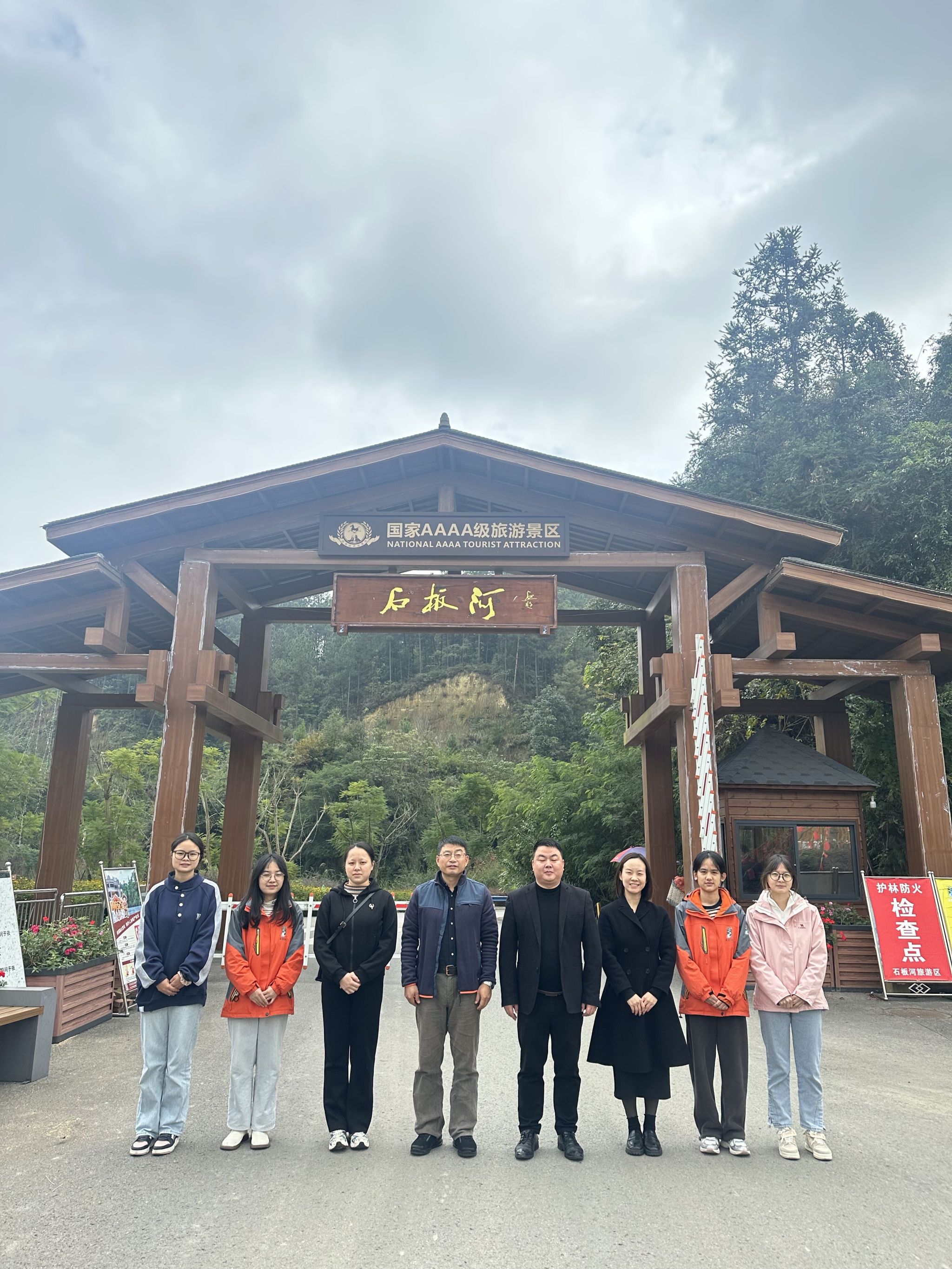 本网讯(文、图/郑曾俊)11月20日,beat365英国官方网站副院长孙永兴、辅导员郑曾俊赴内江市威远县石板河景区实习基地看望实习学生。