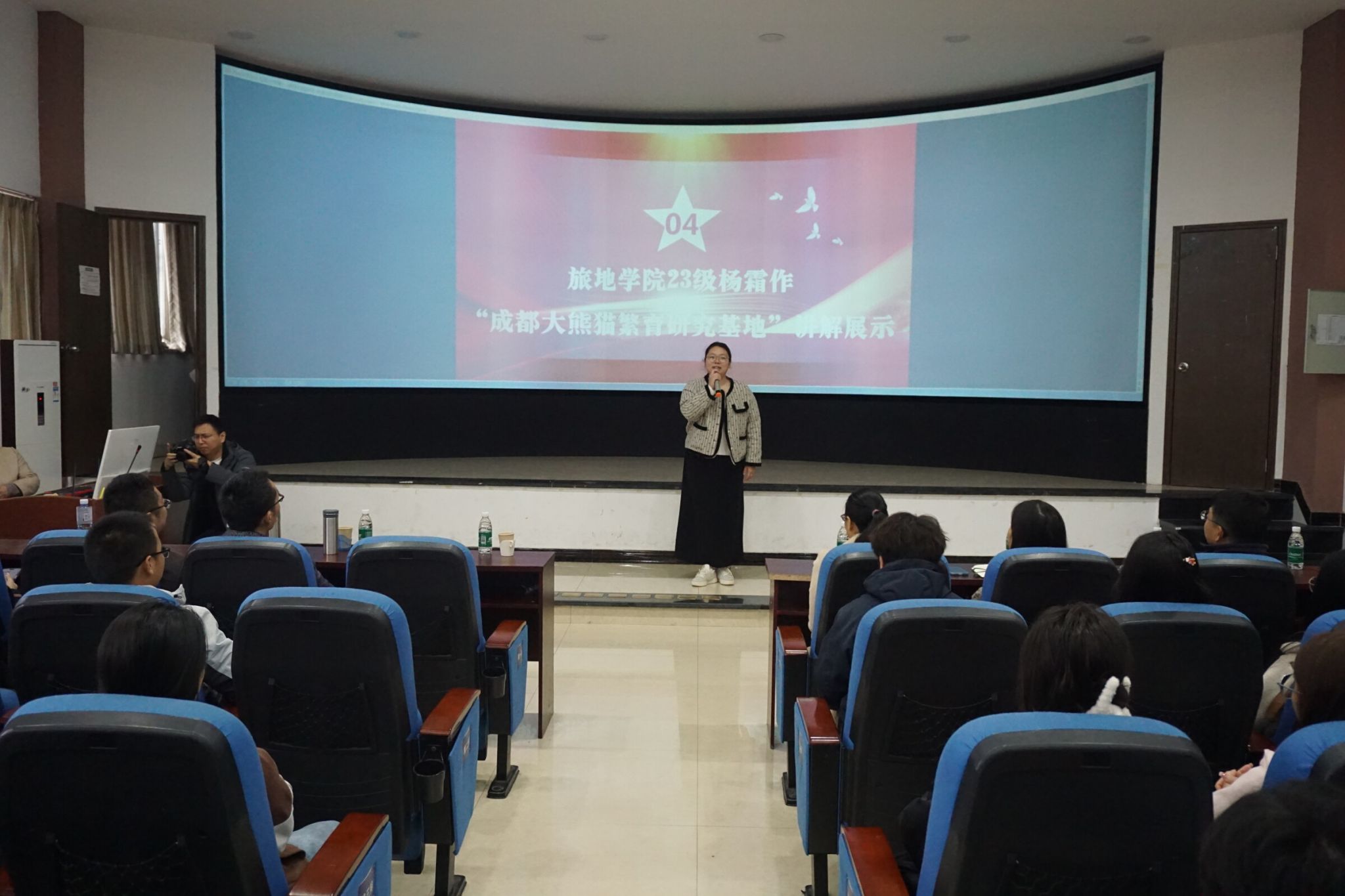 王丹彤以“钢铁战士——李化武”为题讲述了革命先烈的英勇事迹。周欣带来的以“淬英雄之心,铸爱国之情”为题的讲解诠释了革命者的坚定信仰和不屈精神。beat365英国官方网站的马钱、杨霜两位同学为大家带来“都江堰景区”和“成都大熊猫繁育研究”的讲解。王丹彤对两位同学的讲解作了点评,为同学们分享了红色讲解大赛的经验,详细说明了参加大赛的注意事项和技巧,鼓励同学们积极参赛,锻炼讲解能力。互动环节中,王丹彤耐心解答了同学们在旅游讲解过程中遇到的问题,现场气氛热烈,交流充分。