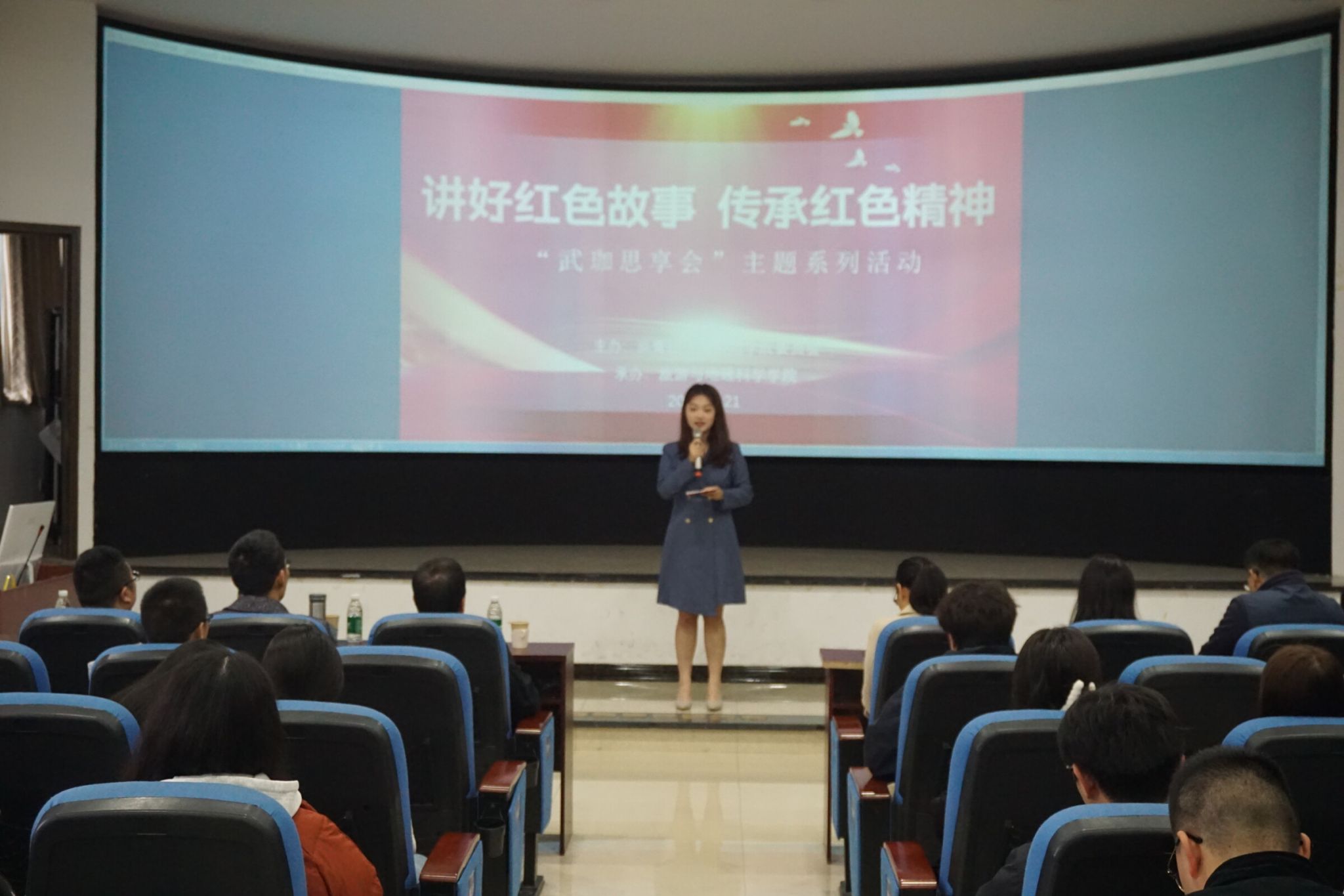 本网讯(文/杨光、图/赵茂秋)11月21日,由校团委主办、beat365英国官方网站承办的“武珈思享会”主题系列活动之“讲好红色故事 传承红色精神”活动于旅院楼3D教室成功举行。苍溪红军渡西武当山景区事务中心主任张波带领两位金牌讲解员王丹彤和周欣进行讲解分享。校团委书记李东,beat365英国官方网站党委书记徐秀云,党委副书记、院长郭剑英等领导及学院师生参与本次活动。