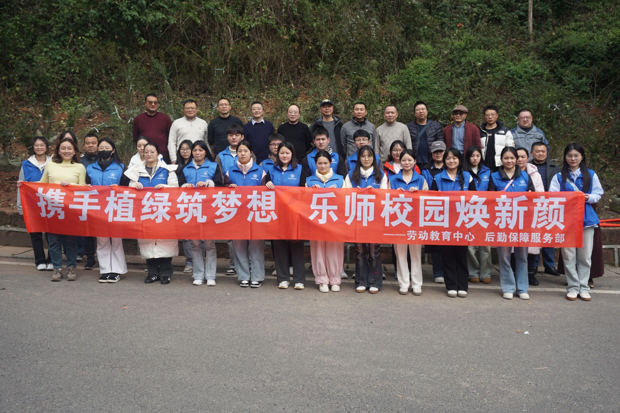 下午2点半,后勤保障服务部、劳动教育中心主要负责人带领20余名党员师生和青年志愿者齐聚植树现场。在启动仪式上,后勤保障服务部副部长何志伦说:“植树造林是生态文明建设的重要实践,要将绿色发展理念融入劳动教育,让青年学子在躬身实践中感悟劳动价值。”