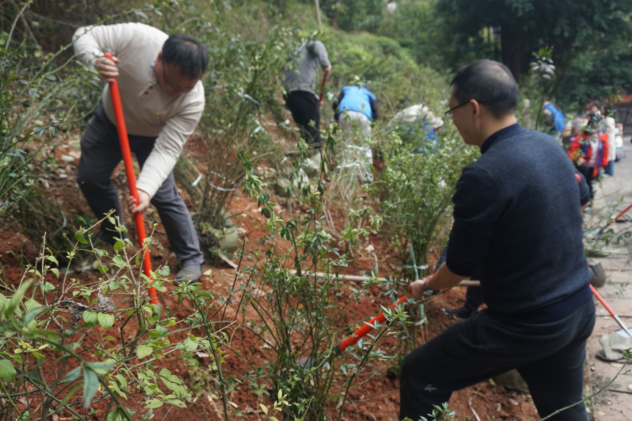 经过两个多小时的辛勤劳作,30余株迎春花苗在春风中迎风而立。后勤保障服务部吴芳老师表示,此次活动既是生动的生态文明课堂,也是劳动教育的实践平台,希望以“党建红”引领“生态绿”,让环保理念和劳动精神在师生心中生根发芽。