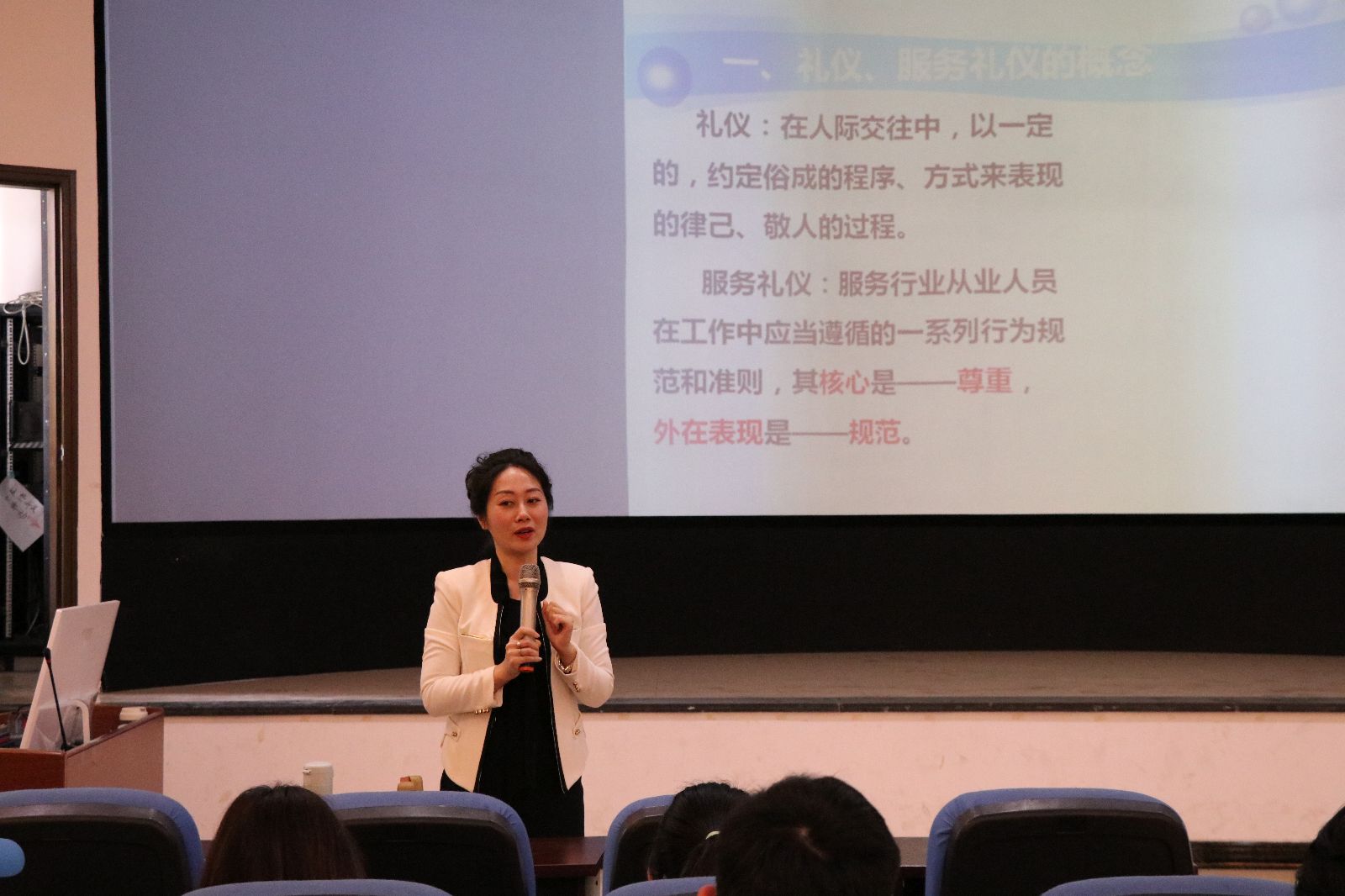 杨嫦君从着装搭配、面部表情和肢体动作这三个方面为大家做了培训。