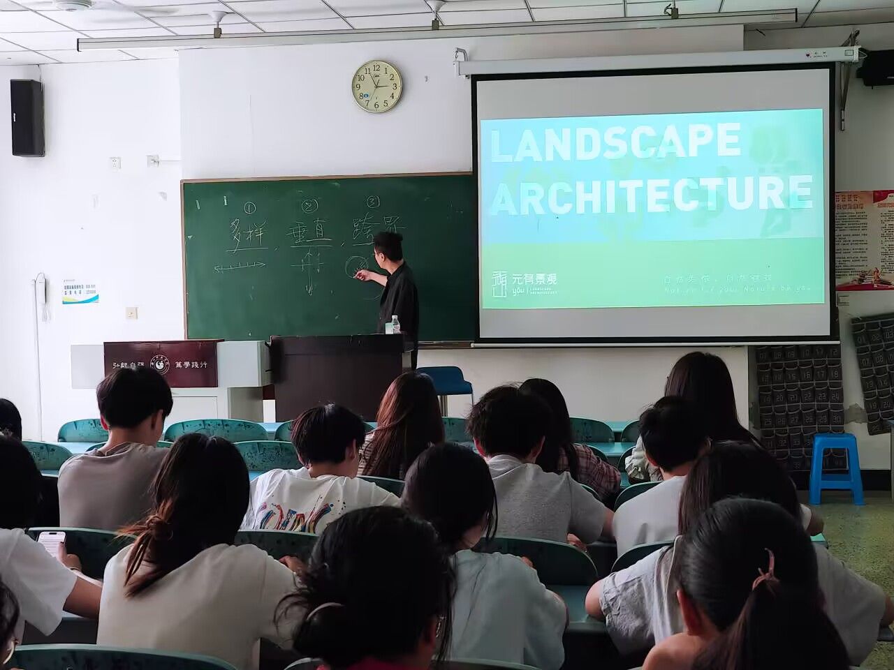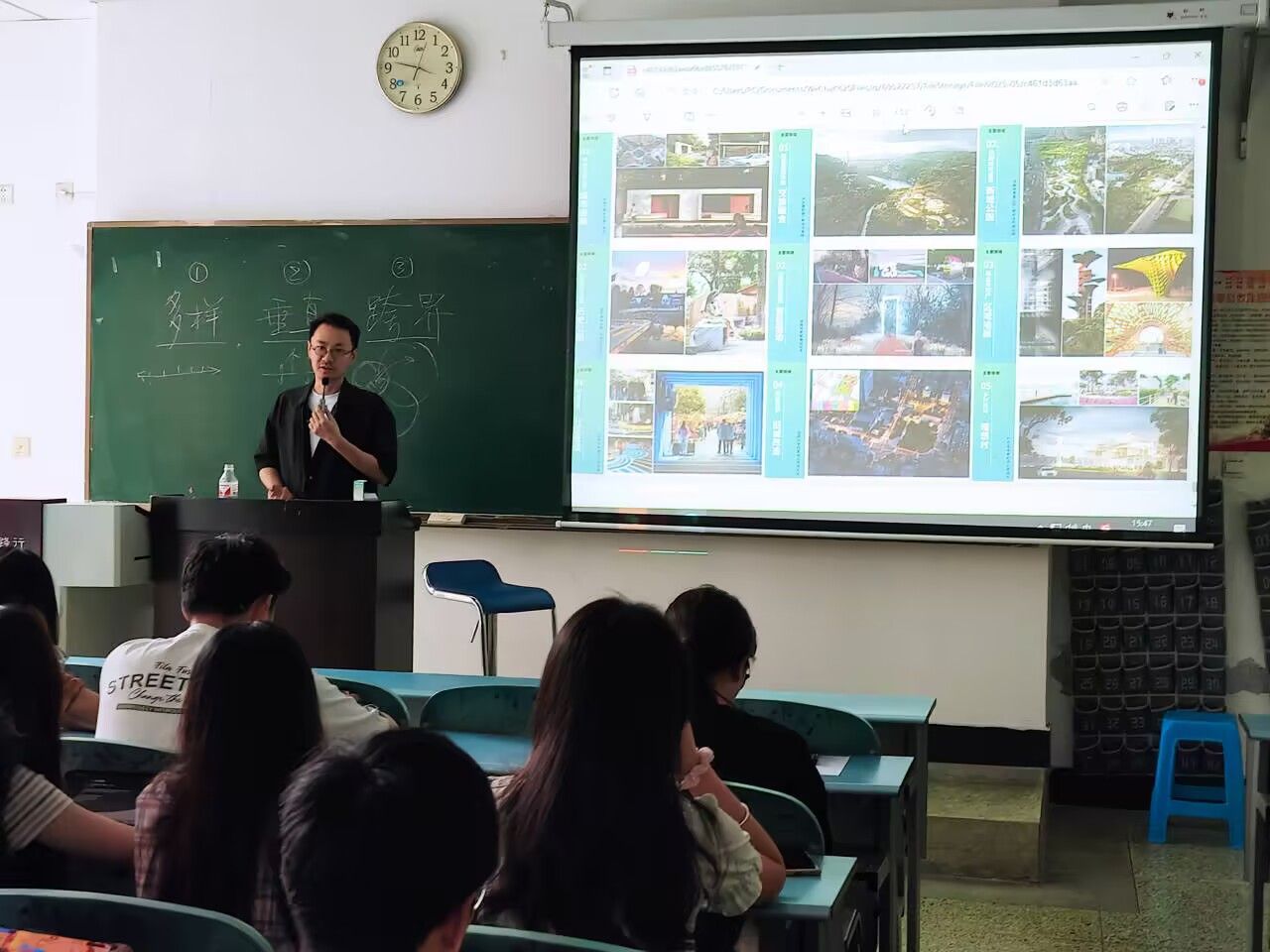 本网讯(文、图/陈佳炫)5月15日下午,beat365英国官方网站“行业专家进课堂”活动在行知楼112教室顺利举行。学院特别邀请了元有景观规划设计院创始人、国家注册景观设计师蒋侃迅,为2022级和2023级人文地理与城乡规划专业的学生带来了一场题为“景观设计的跨界思维——从生态理想到城乡实践”的精彩讲座。