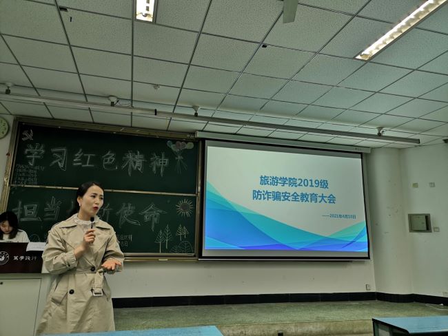 学生科科长左莉、辅导员王一鸣、谭妙、郑曾俊分别通过案例讲解、播放视频等方式,向同学们详细讲解了防范诈骗相关知识,通过分析被骗的案例,警醒全体同学不要轻信任何“天上掉馅饼”的事,叮嘱同学们要提高警惕,吸取教训,不点陌生链接,不相信网贷、刷单等骗局,不向陌生人透露自己银行账号和身份证号码等个人信息,切实保障自己的人身财产安全。