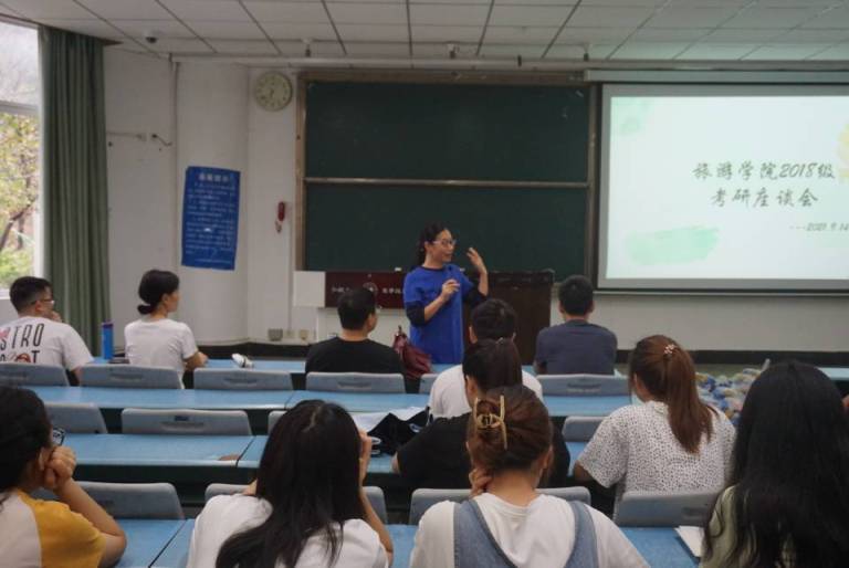 本网讯(文/图 刘凡嘉)9月14日上午,旅游学院在行知楼114教室举行18级考研座谈会。本次会议由2018级辅导员郑曾俊主持,旅游学院党总支书记徐秀云、院长郭剑英、党总支副书记冉勇、副院长但强、院长助理孙永兴、学生科科长左莉以及18级全体考研学生参加了此次会议。