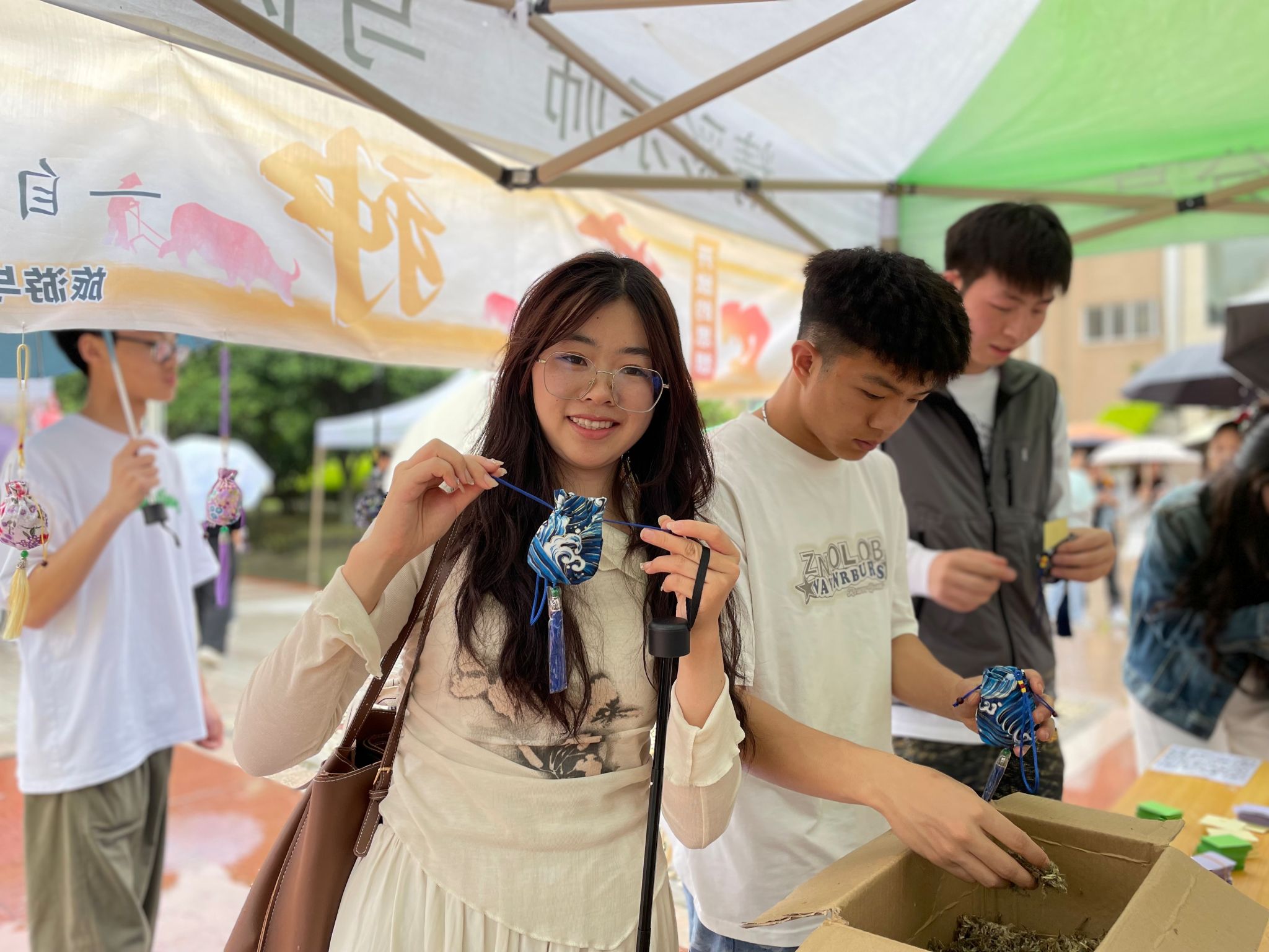 本网讯(文、图/李诗雨)4月18日,在学校心理健康教育中心的指导下,beat365英国官方网站二级心理辅导站(以下简称“辅导站”)在桂花广场开展以“与四时同序,与幸福同行”为主题的心理嘉年华活动,本次活动以“芒种”节气为切入点,举办了“心灵香氛—DIY自我鼓励香囊”心理健康特色活动。