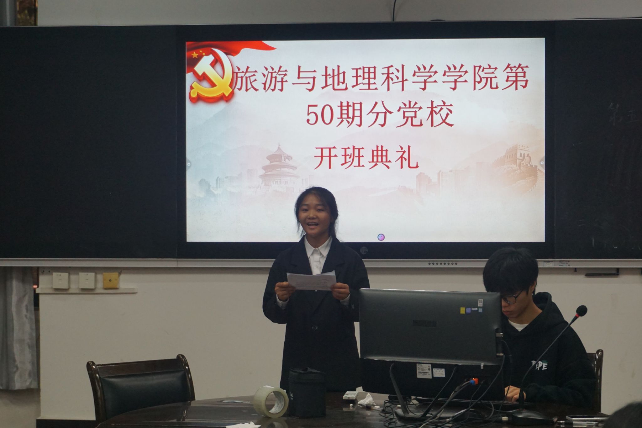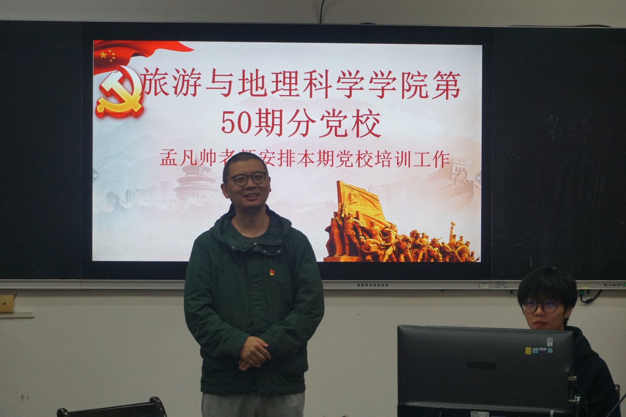 本网讯(文/邓伟祥、图/杨光)10月31日,beat365英国官方网站第50期分党校开班典礼于旅院楼102教室隆重举行。学院专职组织员、第一学生党支部书记孟凡帅,学院第50期分党校全体学员参加了开班典礼。