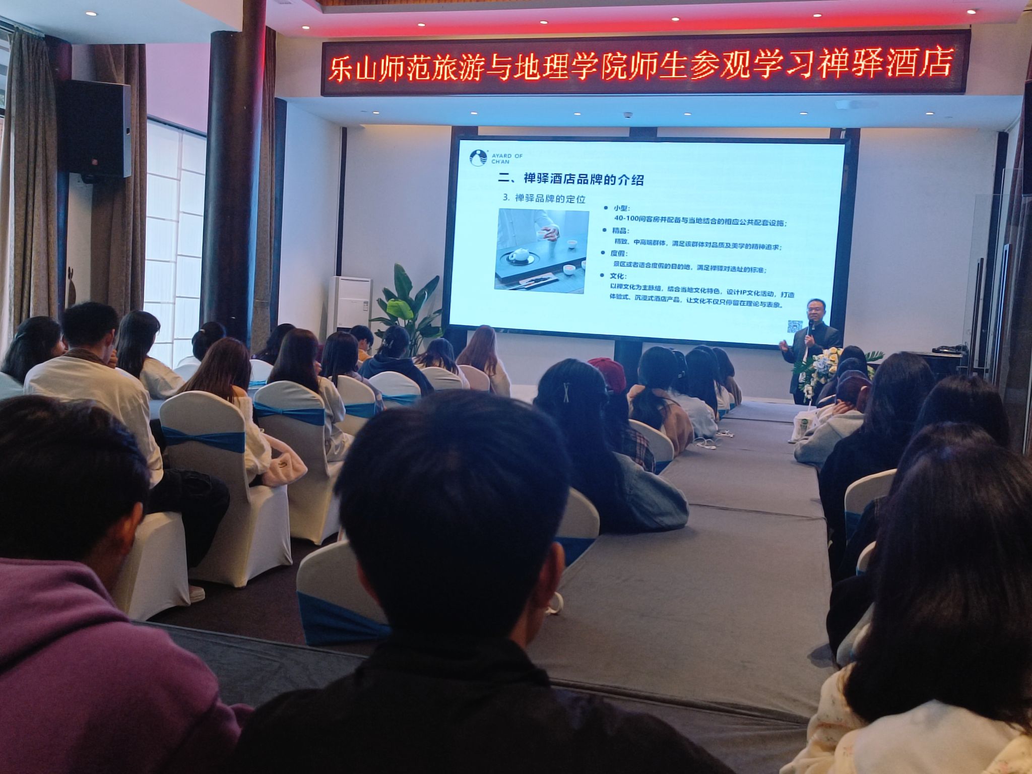 beat365英国官方网站外聘专家、四川禅驿集团品牌文化总监、乐山禅驿酒店总经理、学校93级优秀校友樊欣为同学们带来了《自在禅,安心驿》主题讲座。他结合自身的实践经验和理论知识,为同学们提供了宝贵的建议和启示。这些讲座和交流活动不仅拓宽了学生们的视野和思路,更为他们未来的职业发展指明了方向。