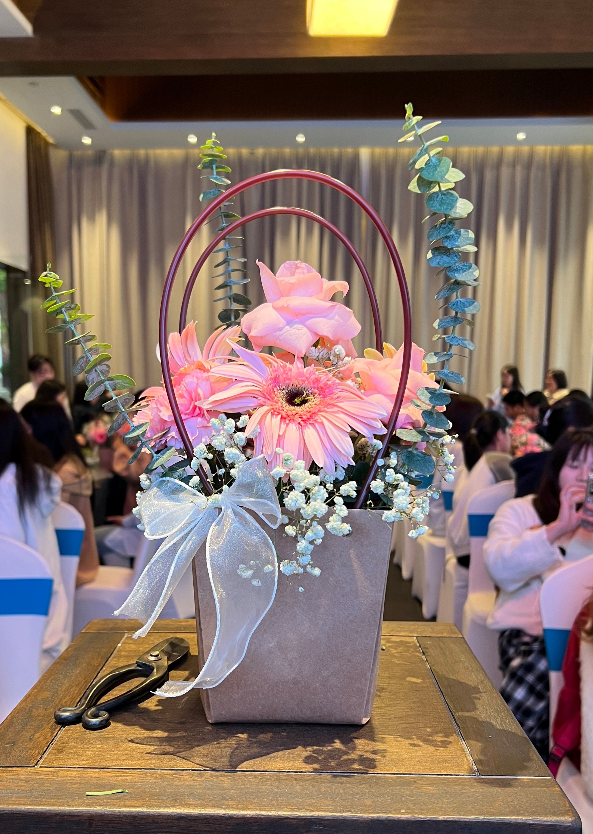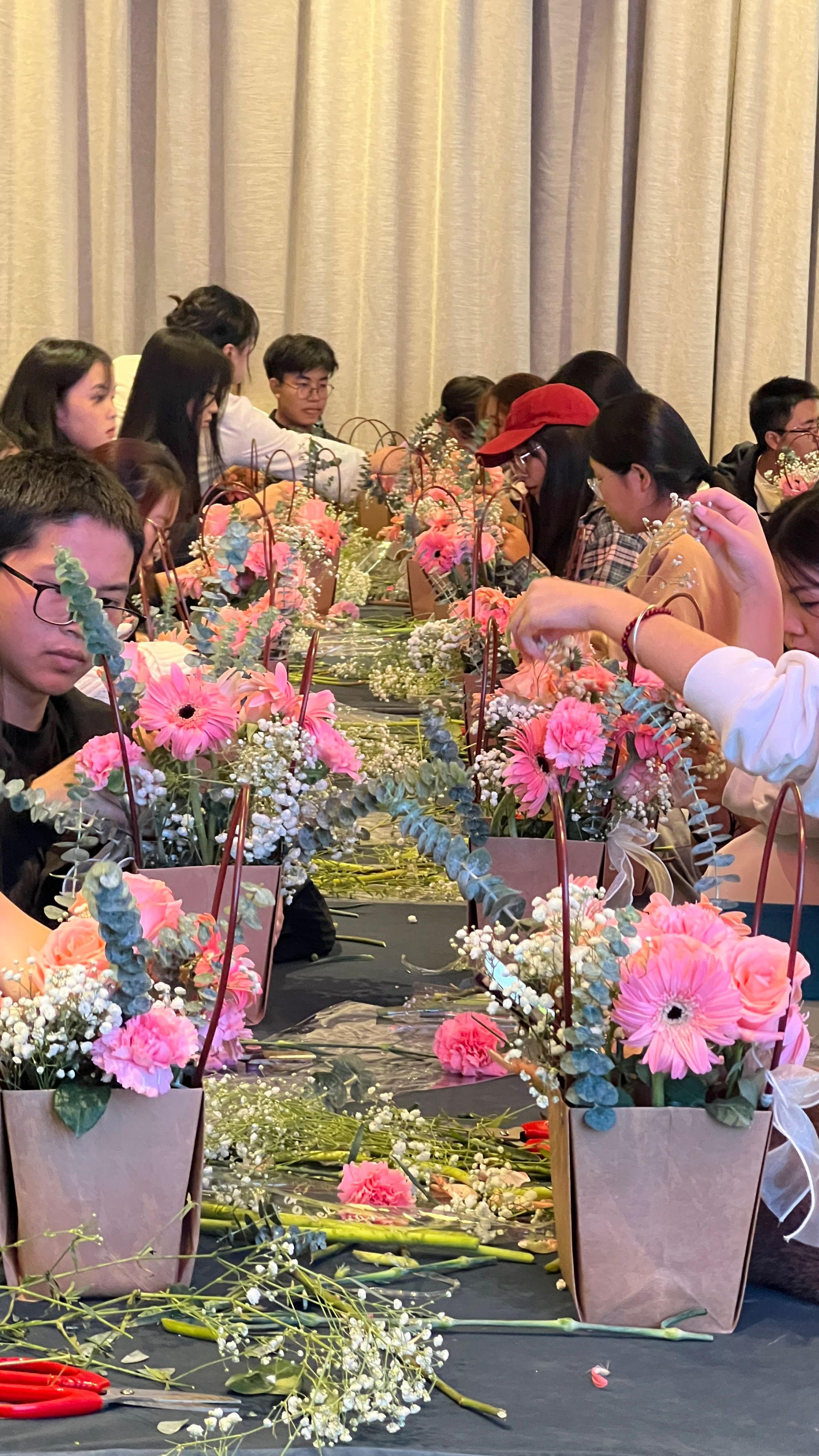 与此同时,同学们还参与了插花艺术的实操活动。在专业插花师的指导下,他们不仅学习了插花的基本技巧,更在创作过程中体会到了艺术的魅力和文化内涵。同学们通过挑选花材、修剪花枝、设计造型等步骤,逐步掌握了插花技艺。
