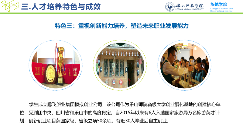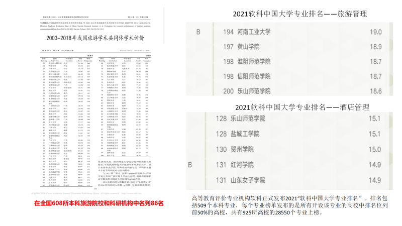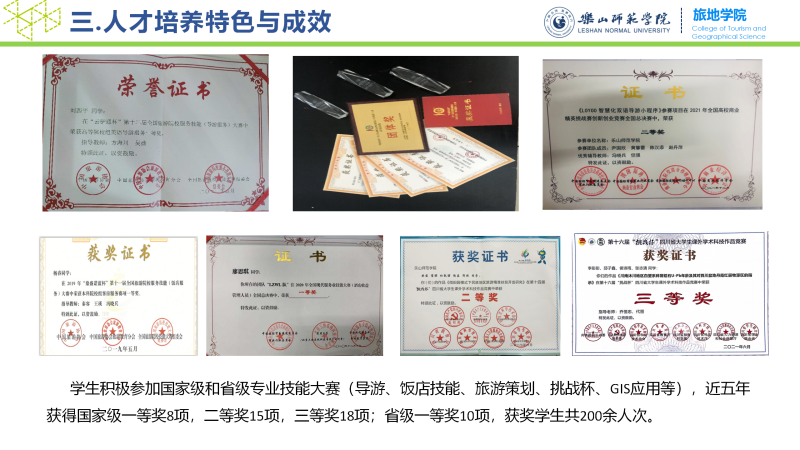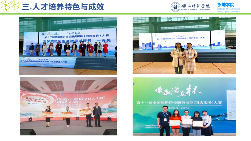 beat365英国官方网站是全国同类地方院校中旅游研究最强的二级学院之一。建有四川省哲学社会科学重点研究基地——四川旅游发展研究中心、原四川省旅游局“遗产旅游研究基地”、 四川省社科联社会科学普及基地——四川世界遗产普及基地、乐山市 “世界遗产研究所”、华中师大(国家文化产业研究中心)西南文化遗产研究基等科研机构。近年来获国家级项目2项、省部级项目30多项,发表论文100余篇,其中核心期刊论文50多篇,出版专著、教材10多部;获得省哲学社会科学优秀成果二等奖1项,优秀成果奖2项。是四川省建设本科旅游管理高等教育质量工程最早和最多的单位,共建设国家教育质量工程2项,省级教育质量工程7项、省级教改项目3项,国家规划教材2部,省规划教材2部,获得省部级以上教学成果奖2项。