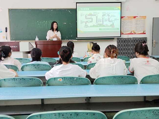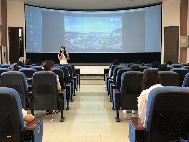 两家公司的相关负责人分别简要介绍了各自公司的基本情况、岗位需求、实习待遇等内容。链家公司王欢向同学们介绍了员工坚持在公司工作的原因,鼓励同学们趁年轻,去更大的城市开阔眼界,积累人生阅历。长隆公司李紫薇对招聘实习生的工作岗位和流程作了详细讲解,就薪资待遇、福利保障和未来的广阔发展空间作了详细的阐述。