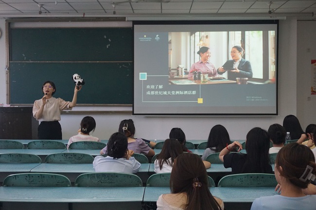 在行知楼101教室,各用人单位从实习待遇、酒店发展特色以及发展前景等方面进行宣讲。互动环节中,同学们纷纷根据自己的职业规划和专业特长,积极与招聘人员交流。宣讲会后进入面试环节,面试分企业分教室进行,同学们手持精心准备的简历去心仪的单位面试,开始了学生和企业的双向选择。