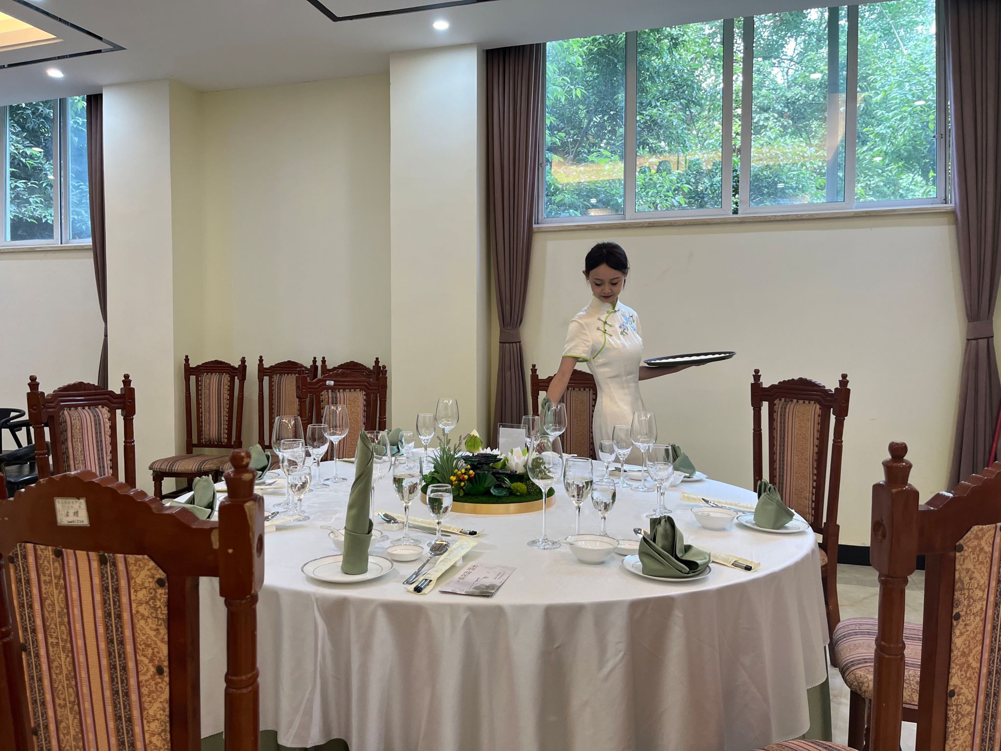 本网讯(文、图/邓伟祥)5月22日,beat365英国官方网站于旅游综合实训中心举办了酒店管理专业技能展示活动。学院党委书记徐秀云,党委副书记、院长郭剑英,副院长但强以及旅游管理、酒店管理专业的教师和2023级酒店管理专业一班全体学生共同参加了此次活动。