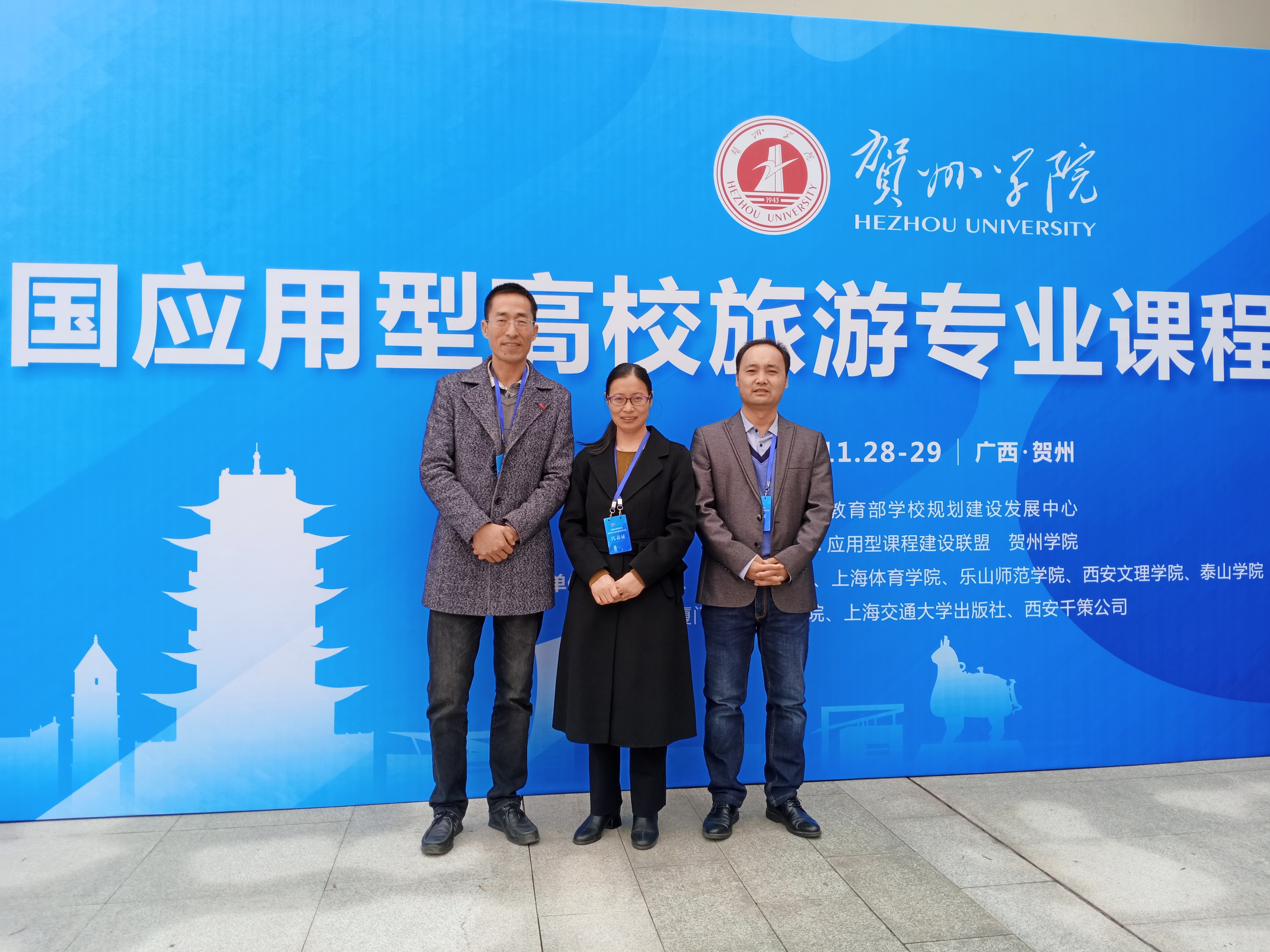 (图/文武克军)11月28日至29日,全国应用型高校旅游专业课程建设研讨会在贺州召开。会议由教育部学校规划建设发展中心主办,应用型课程建设联盟及贺州学院承办,来自全国近50所高校的专家、教师代表超过百人参加会议,共商应用型高校旅游专业课程建设。beat365英国官方网站是本次会议的协办单位,旅游学院院长郭剑英、副院长但强和四川世界遗产普及基地主任武克军博士参会。