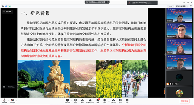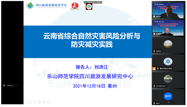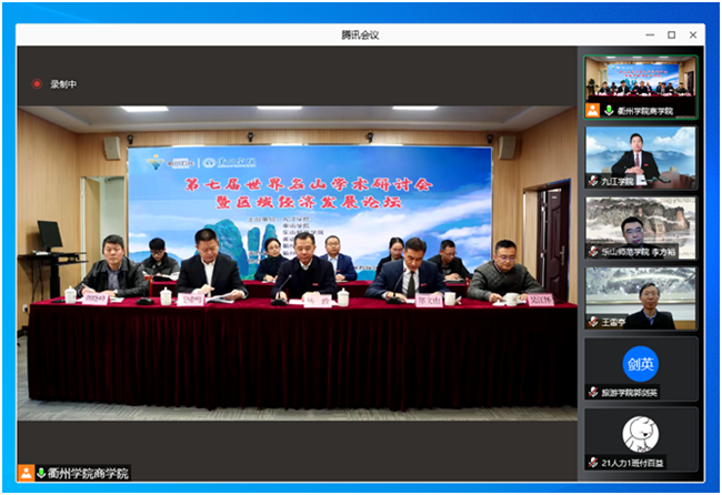 本网讯(图、文/冯晓兵)12月18日,由九江学院、泰山学院、beat365英国官方网站、黄山学院、衢州学院主办,衢州学院承办、衢州市文化广电旅游局、衢州市文化旅游投资发展有限公司协办的“第七届世界名山学术研讨会暨区域经济发展论坛”在衢州学院顺利召开,会议采取线上+线下的模式。党委常委、副校长李方裕教授带队,旅游学院院长郭剑英教授、刘洪江教授、冯晓兵老师在线参加了会议。