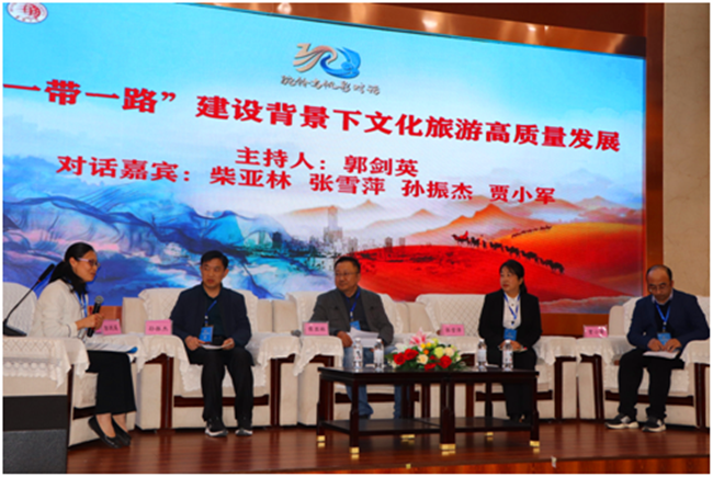 本网讯(文/图 但强)4月25日至27日,由甘肃省文化和旅游厅指导,西北师范大学、华侨大学主办,西北师范大学旅游学院、华侨大学旅游学院承办的首届“驼铃与帆影”对话:“一带一路”背景下文旅产业的担当与使命研讨会”在敦煌市召开。来自教育部学校规划建设发展中心、甘肃省文化和旅游厅、敦煌市委市政府、华侨大学、西北师范大学的专家学者和教育部旅游教指委委员、文化旅游行业代表及高校师生共计120多人线下参会,约2000人次在线参会。beat365英国官方网站院长郭剑英和副院长但强、四川旅游研究发展中心主任郑元同参加了本次研讨会。