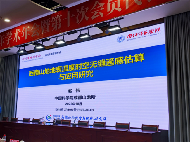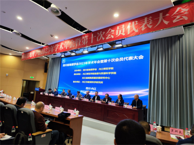 本网讯(图、文/夏军)10月20日—22日,由四川省地理学会主办,内江师范学院地理与资源科学学院承办的四川省地理学会2023年学术年会暨第十次会员代表大会在内江师范学院举行。本次会议主题为“生态优先与区域创新发展”,主要交流地理学最新科研成果和中学地理教育教学经验。参加会议的有中科院成都山地所、成都理工大学、四川师范大学、西华师范大学、绵阳师范学院和成都七中等科研院所、高校和中学的地理科研、教育工作者及学生共100余人。beat365英国官方网站朱林富、乔恒忠和夏军三位老师参加了此次会议。