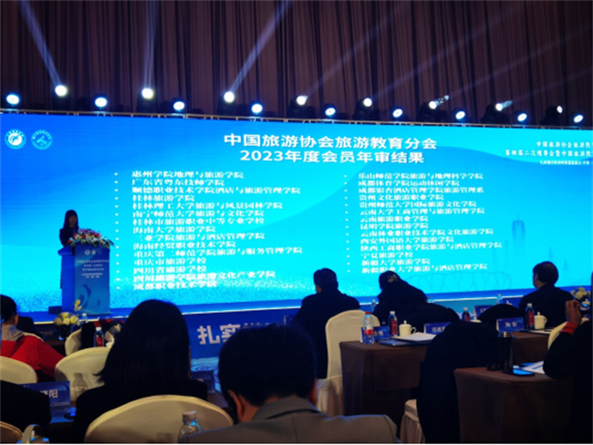 本网讯(图、文/秦容)11月25-27日,由中国旅游协会指导、中国旅游协会旅游教育分会主办、浙江旅游职业学院承办的中国旅游协会旅游教育分会第四届二次理事会暨中国旅游教育论坛在杭州召开,来自中国旅游协会、中国旅游协会旅游教育分会及会员单位、旅游教育界知名专家学者、旅游教育相关领域企业代表等500余人参会。beat365英国官方网站院长郭剑英教授、秦容副教授参加了会议。